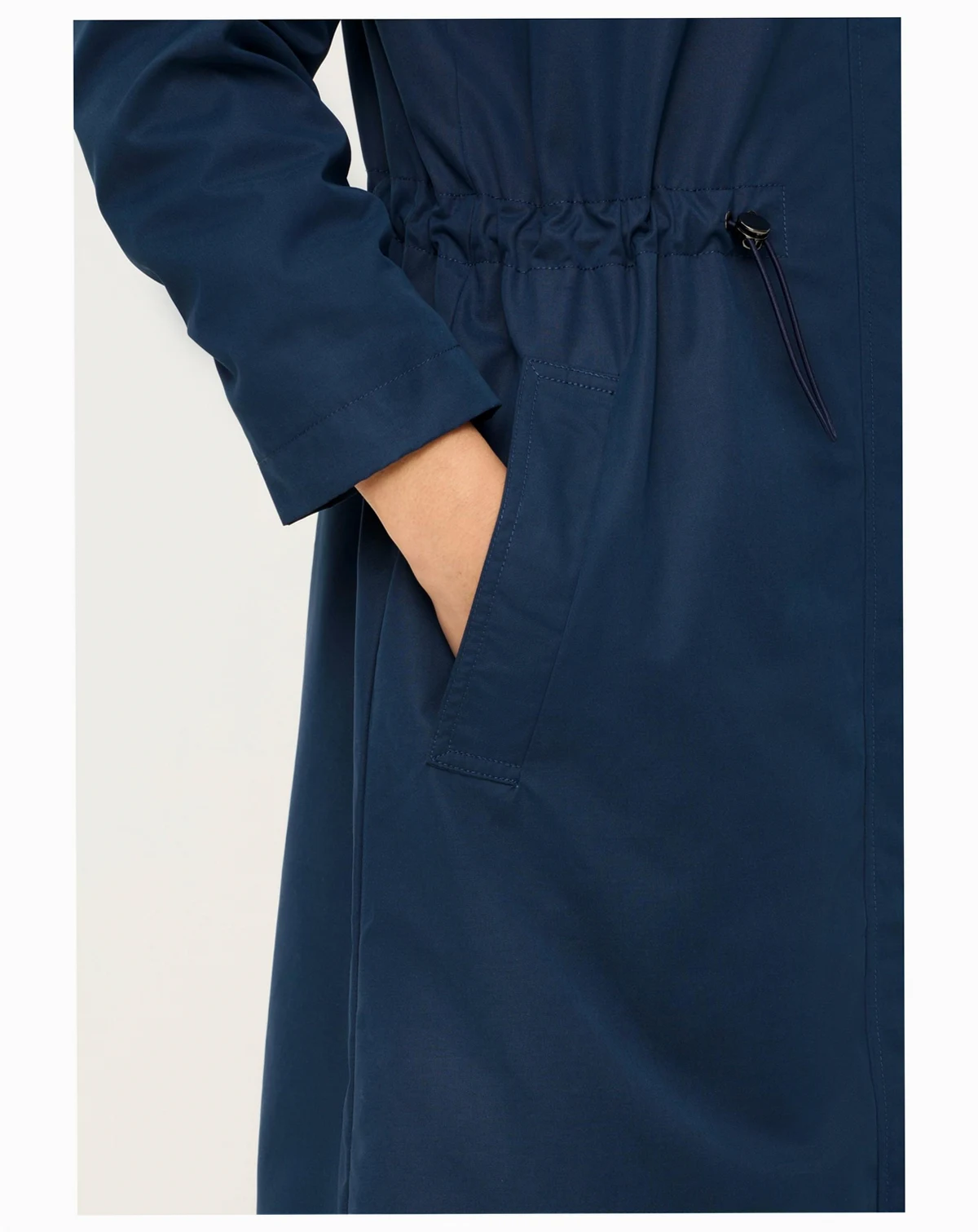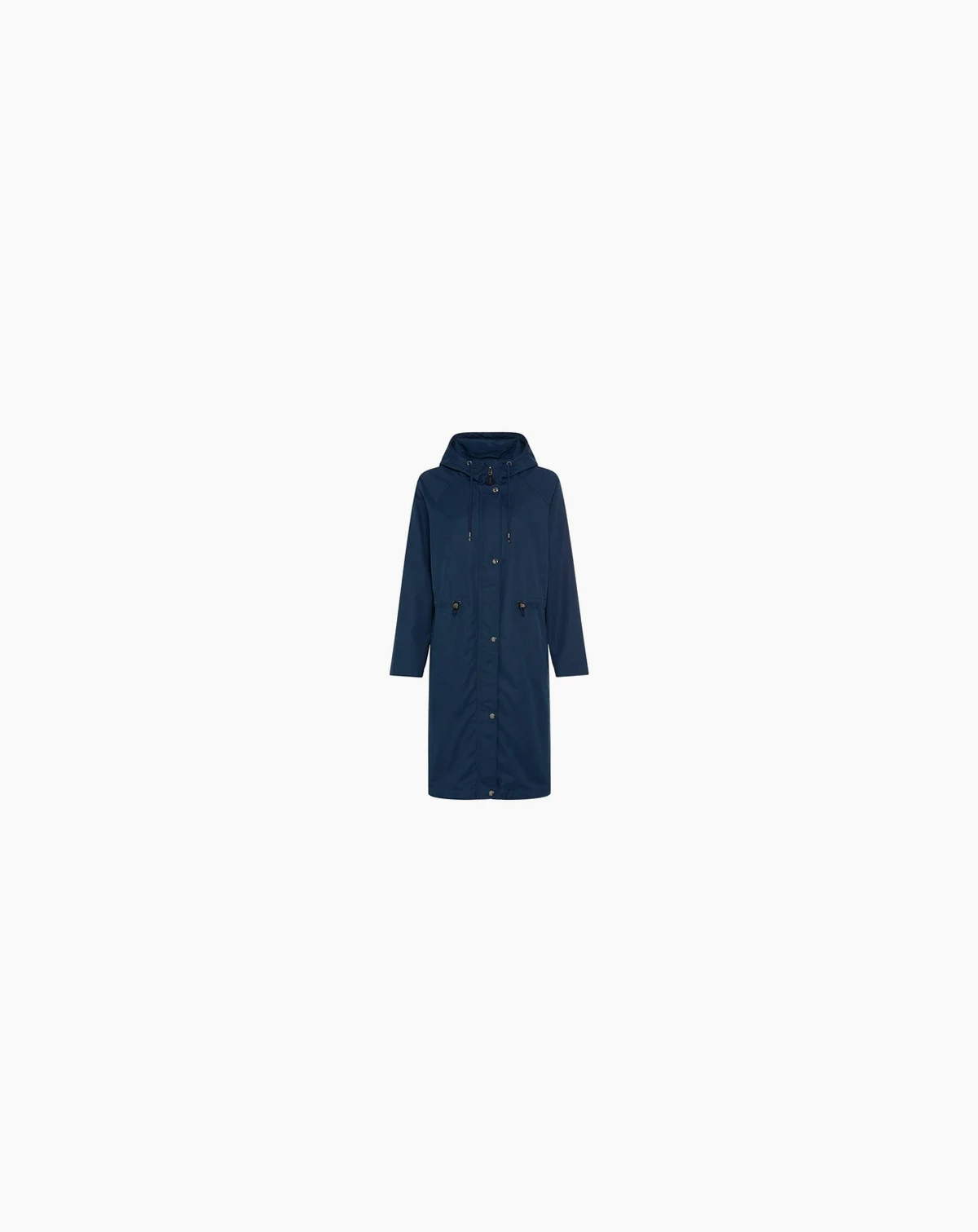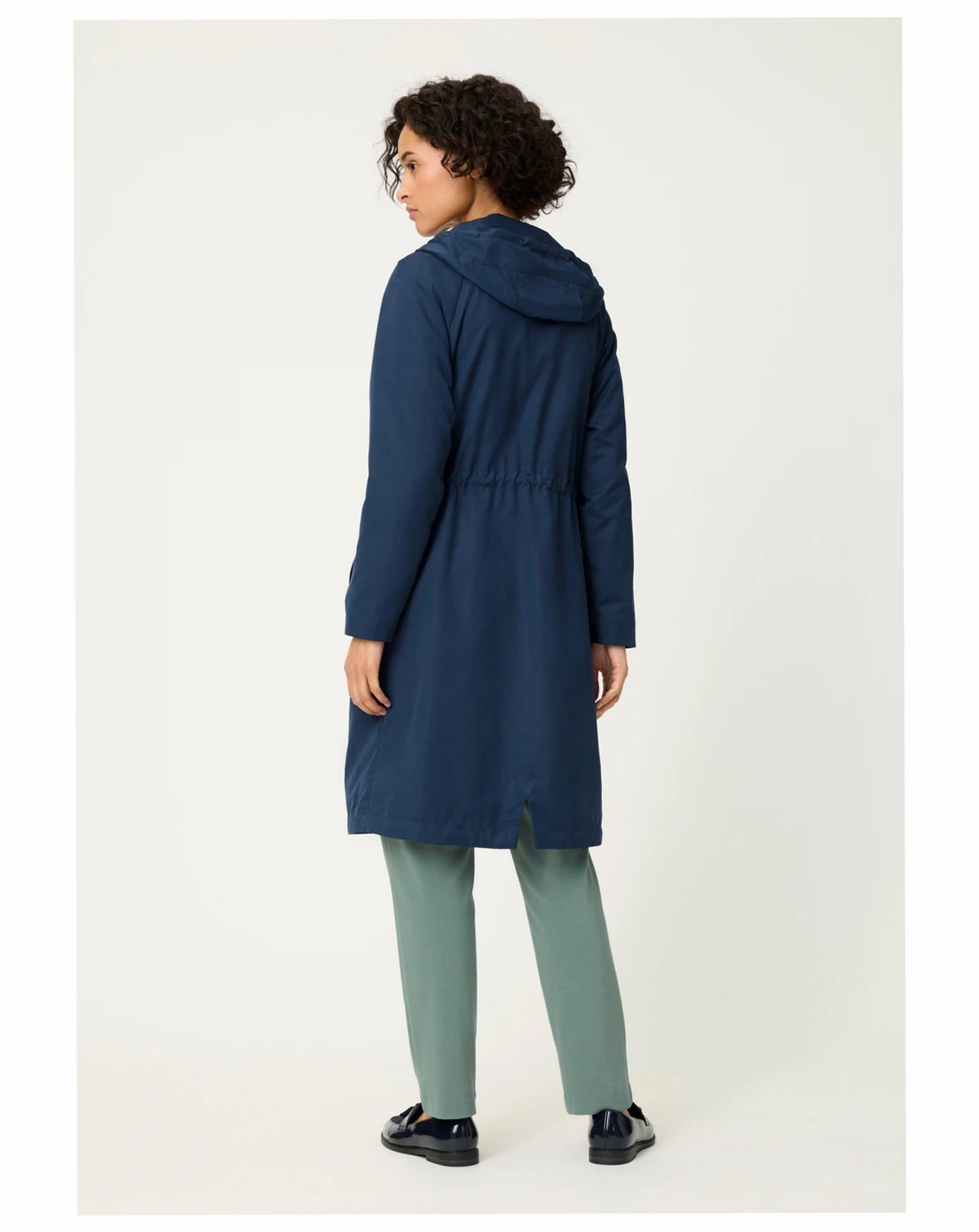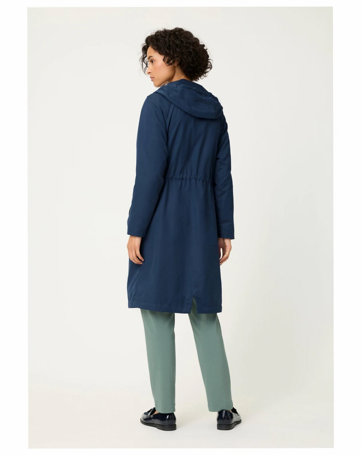 A clean, uncomplicated outerwear essential, this hooded coat delivers timeless style with a long, streamlined silhouette designed for cool days and breezy moments.