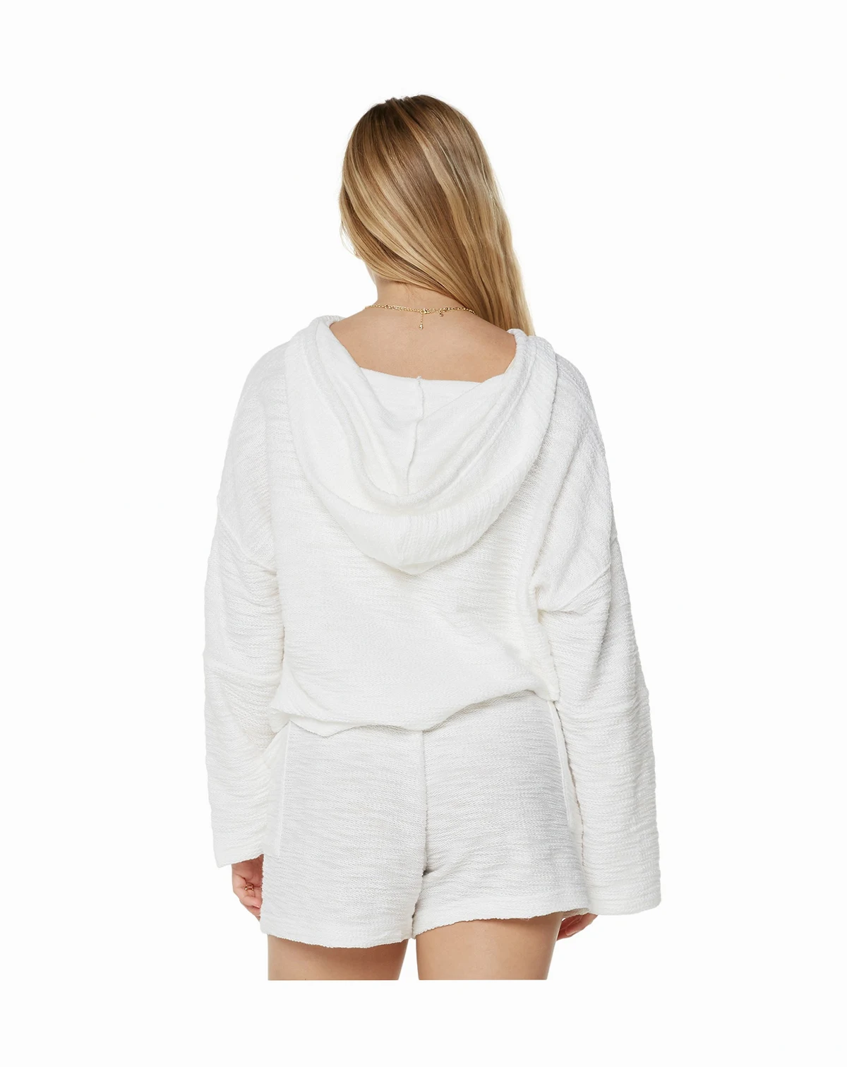 Perfectly laid back and stylish, with slouchy drop-shoulder long sleeves and a convenient attached hood, Roxy's comfy sweatshirt is a cool transitional item when the weather takes a little dip.