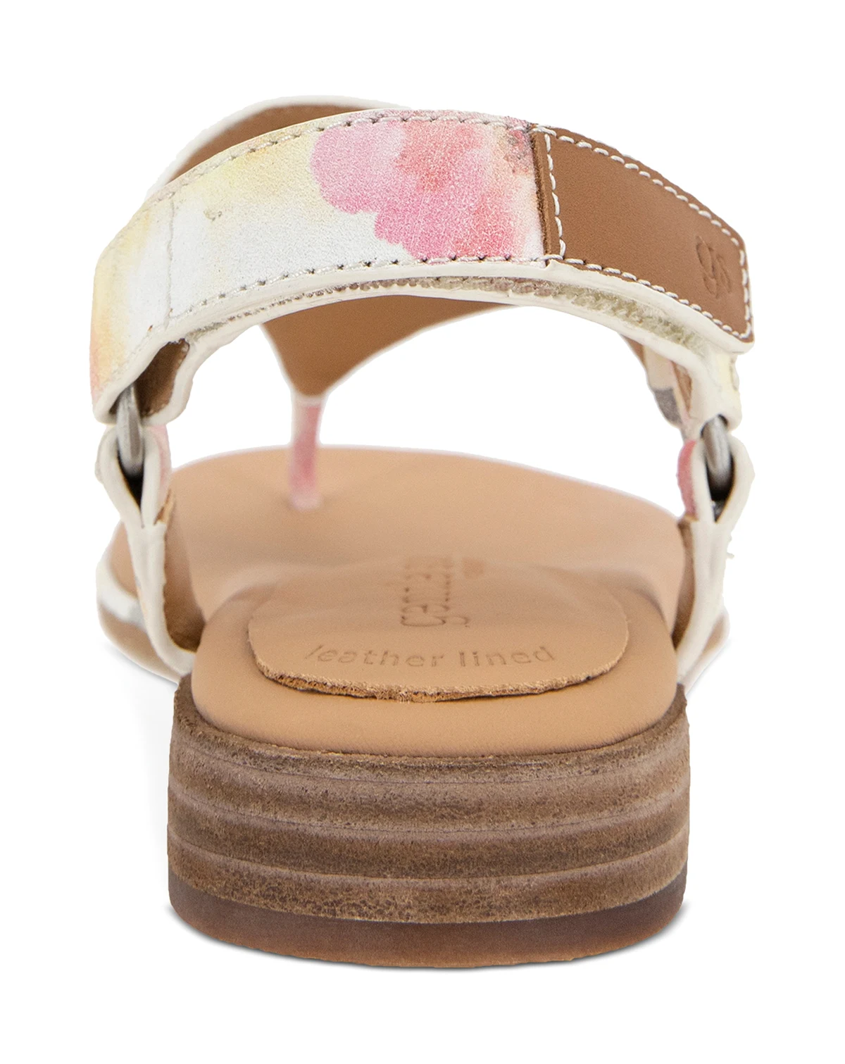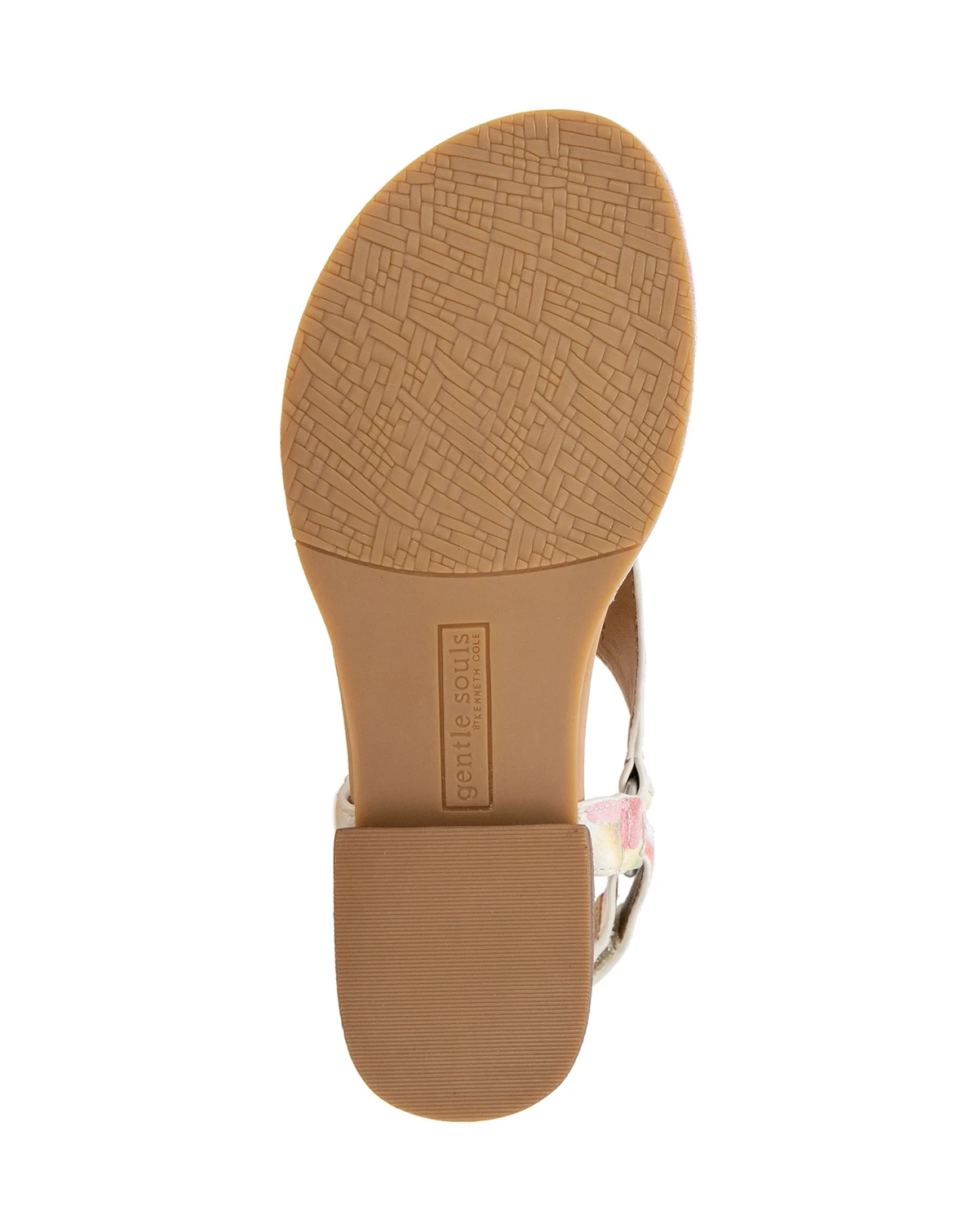 Softly shaded floral designs bring fresh flair to the airy cushioned comfort of the Holly flat sandals from Gentle Souls.