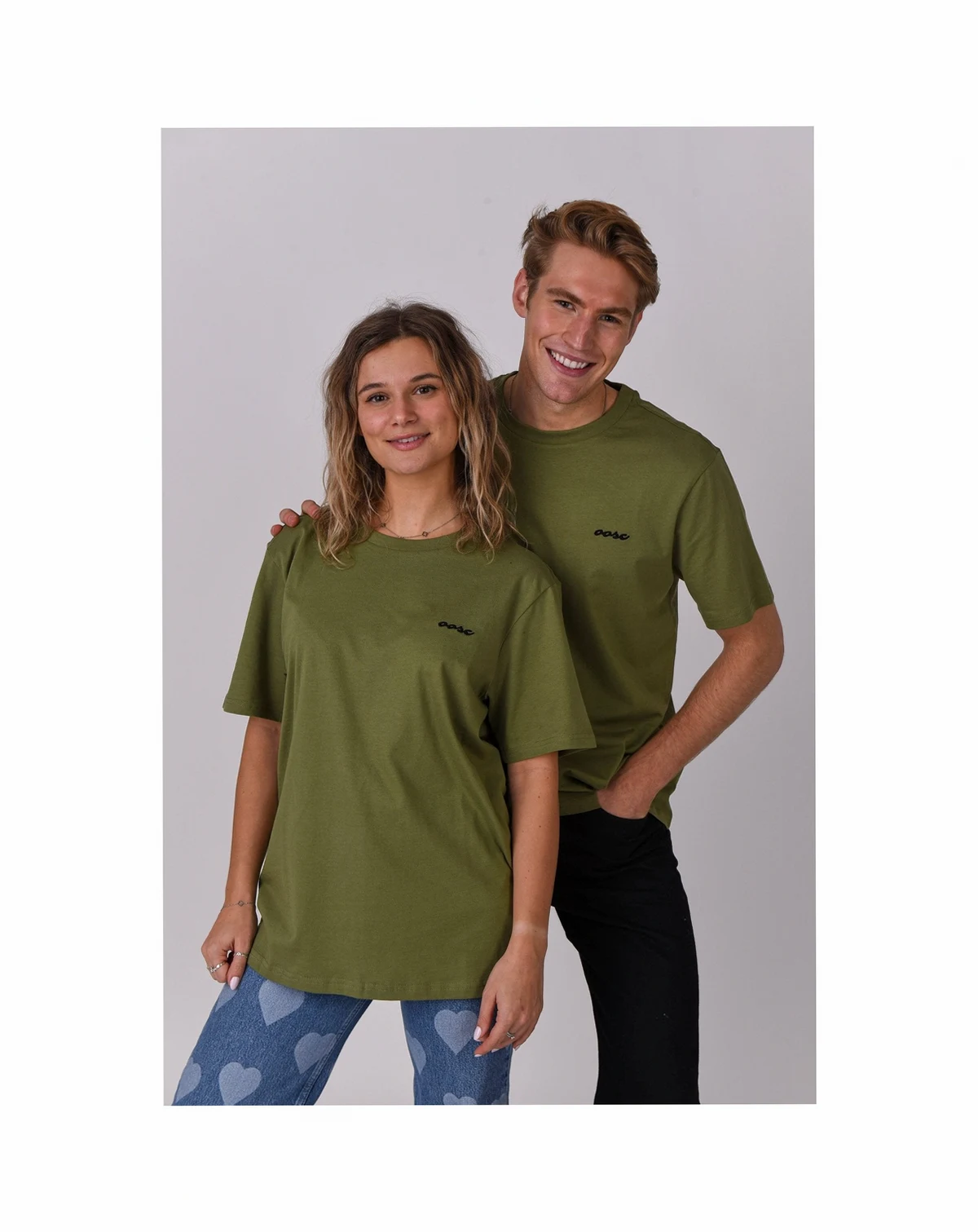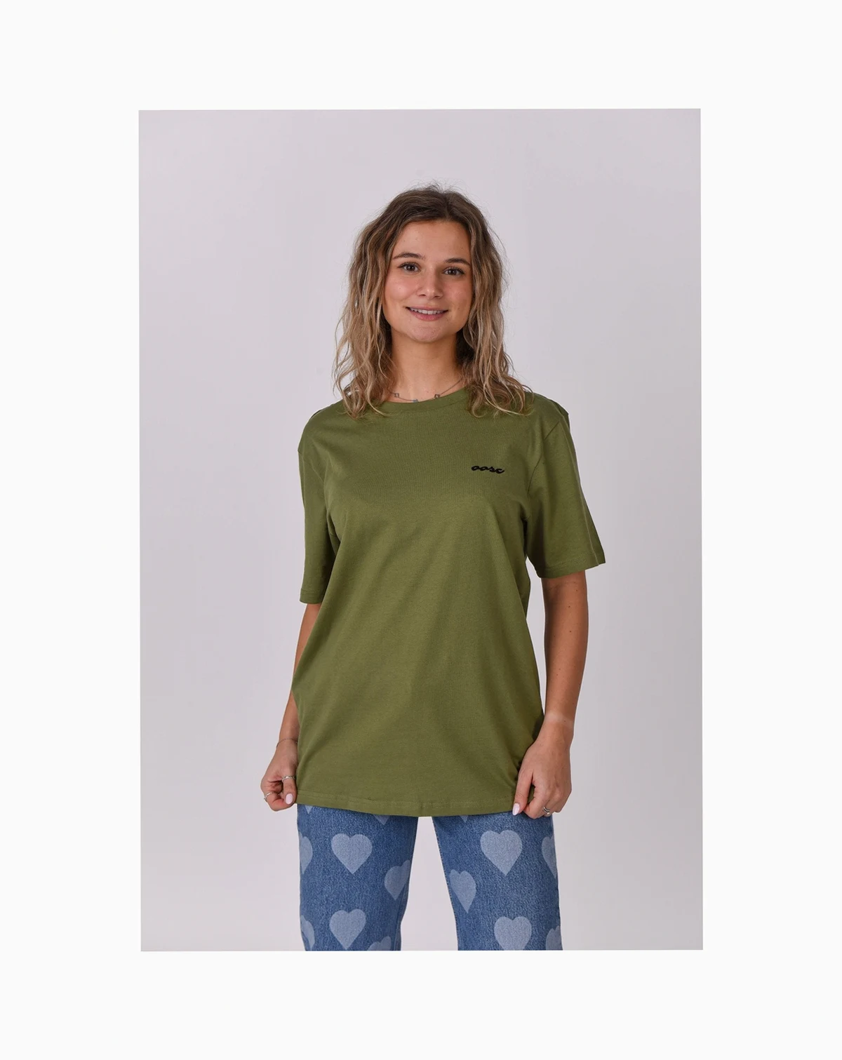 Model information - Height 5ft 6 | US SIZE 4 | Wearing size Small The OOSC T-Shirt is crafted from luxury medium weight organic cotton, with a true to size fit. It features our embroidered italic logo front and British artist Penfold print on the back. • Khaki T-Shirt • True to size fit • Short Sleeves • Round Neck • Embroidered chest logo • Penfold back print • Composition: 100% Organic Cotton • 190gsm This is a unisex fit so size accordingly if youre not sure give us a shout on hellooosc-clothing.com