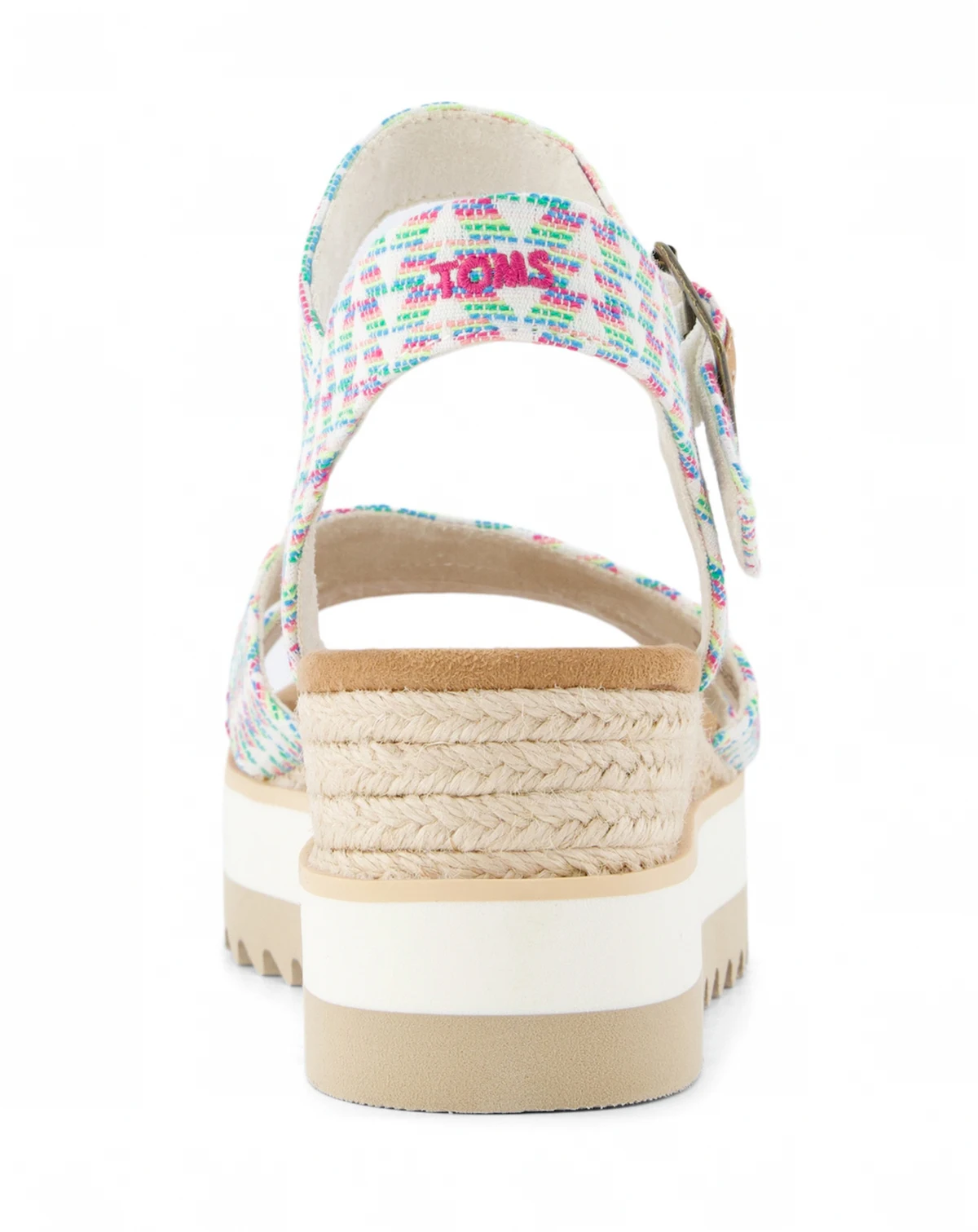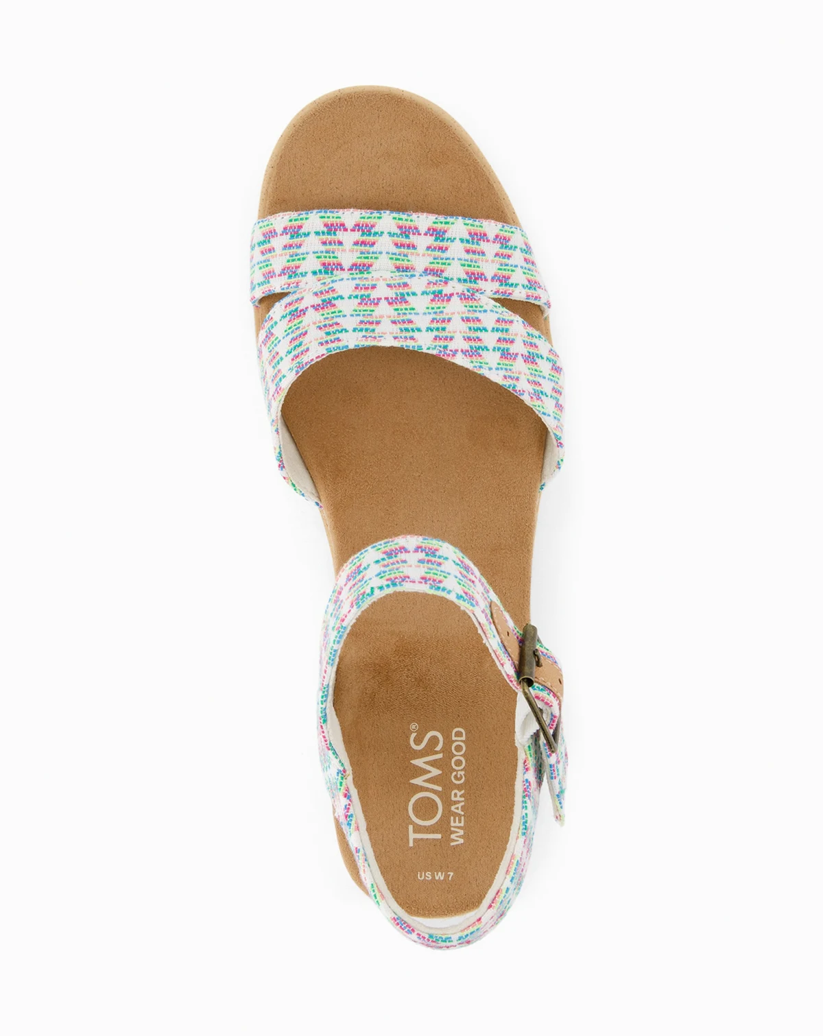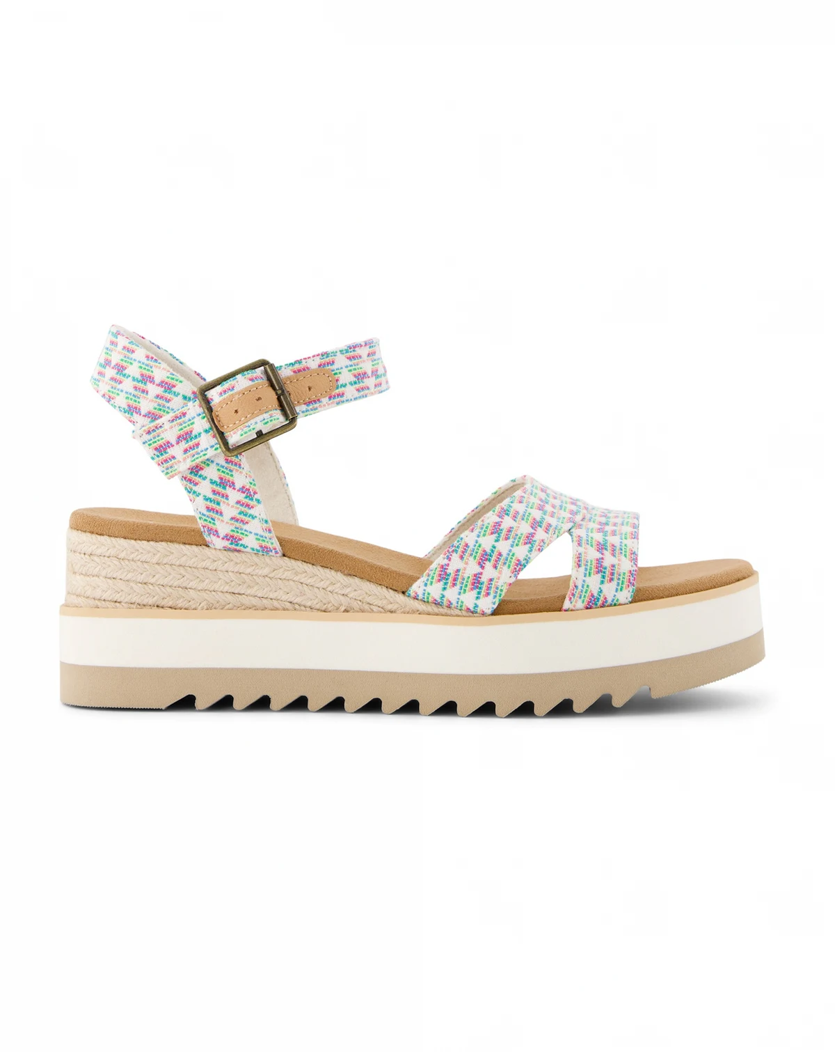 Our effortlessly chic Lousia wedge sandal features semi-attached double toe straps and secure ankle straps. The nearly flatform design offers easy elegance with a little bit of lift and a braided jute detail. Perfect for any picnic, poolside party or vacation destination. EVA outsole, midsole and footbed. Custom Cloud Bound™ foam insoles for all-day comfort and support. Jute rope wraps midsole detail. Wedge height is approximately 2 1/2". Adjustable ankle strap with metal buckle. Your TOMS purchase helps support children's education, health and well-being, giving kids everywhere the gift of better tomorrows.