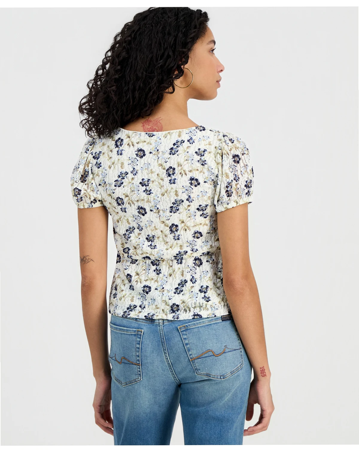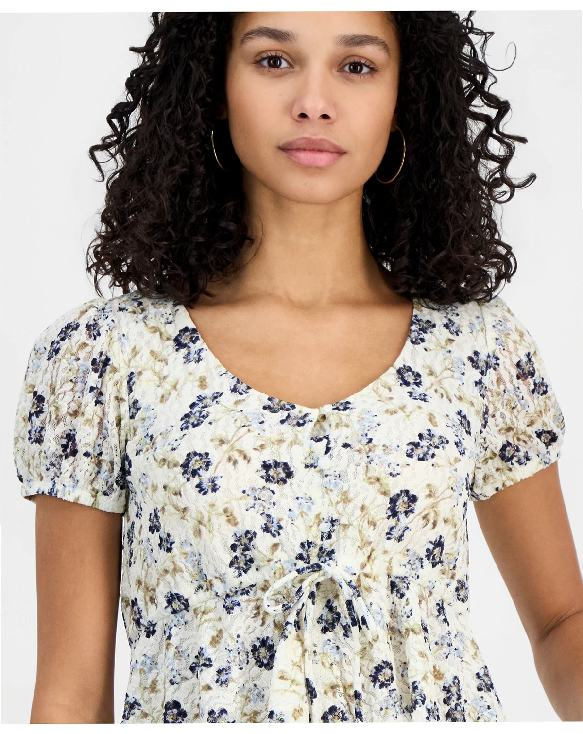 Self Esteem Juniors' Printed Lace Short-Sleeve Babydoll Top