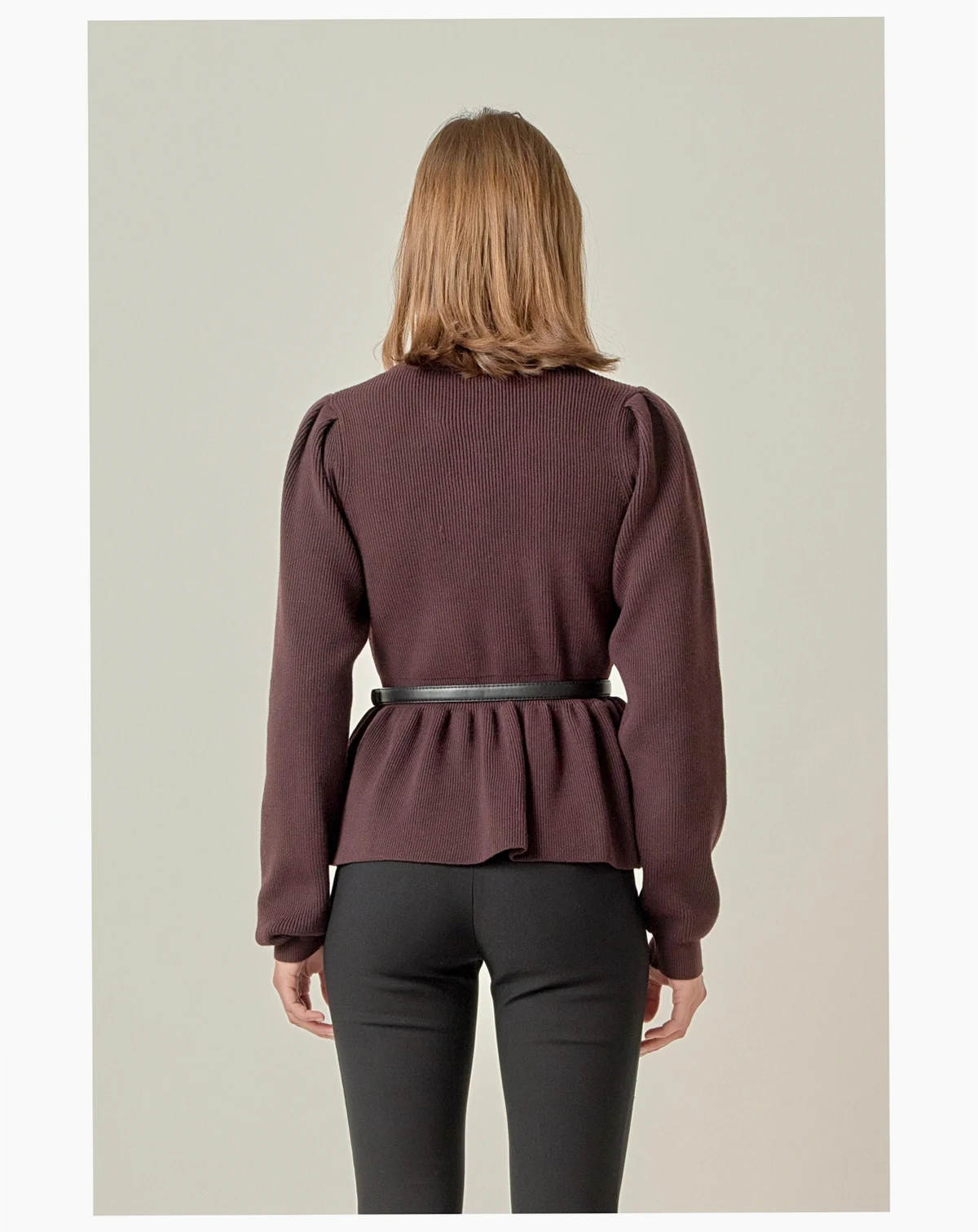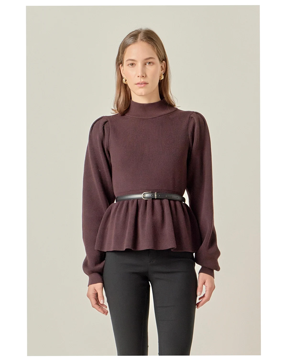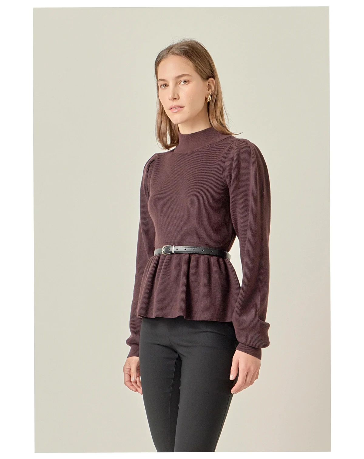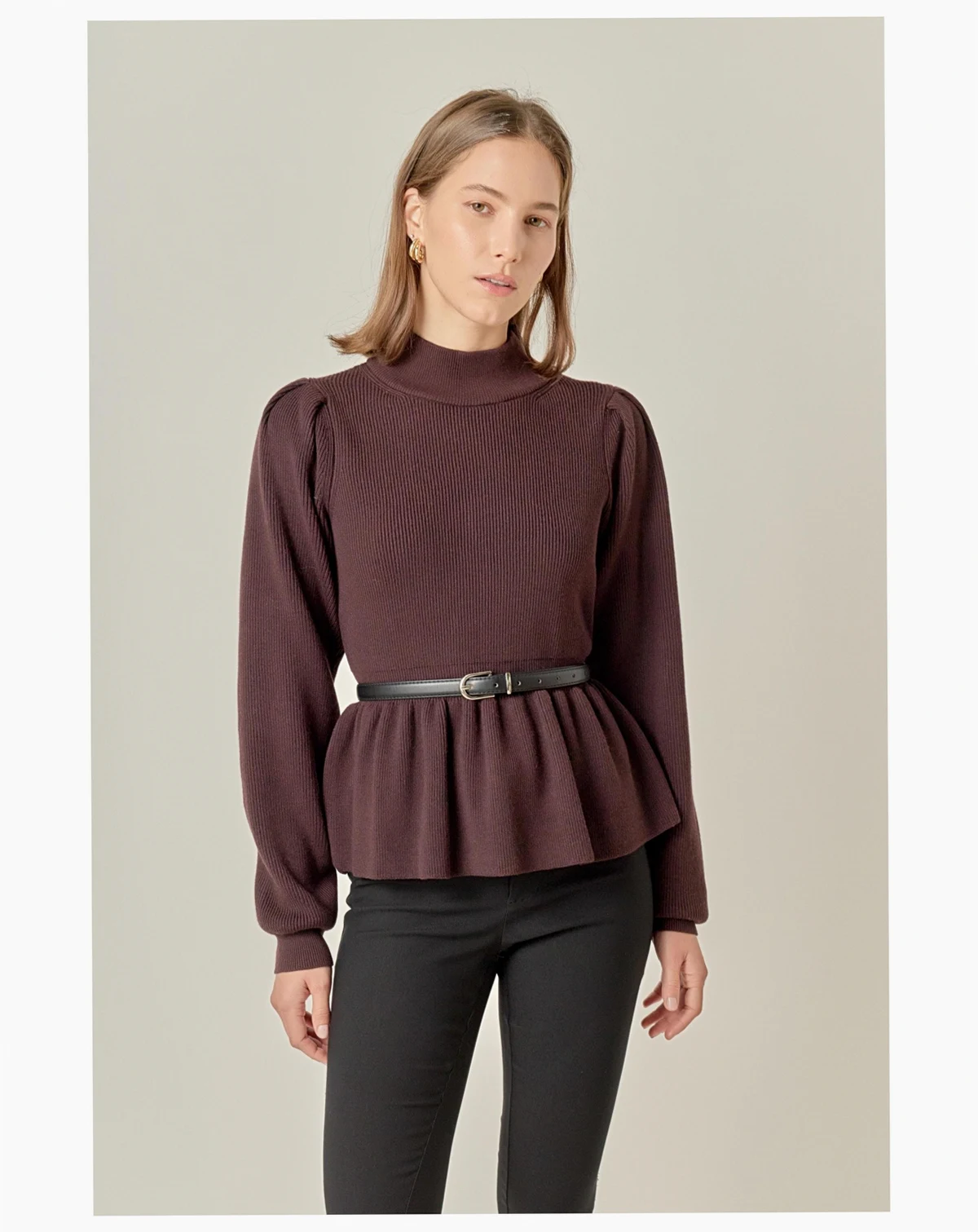 Introducing our must-have Peplum Waist Knit Top the perfect combination of sophisticated and trendy. This figure-flattering top boasts a mock neck and puffy long sleeves giving you a chic silhouette.