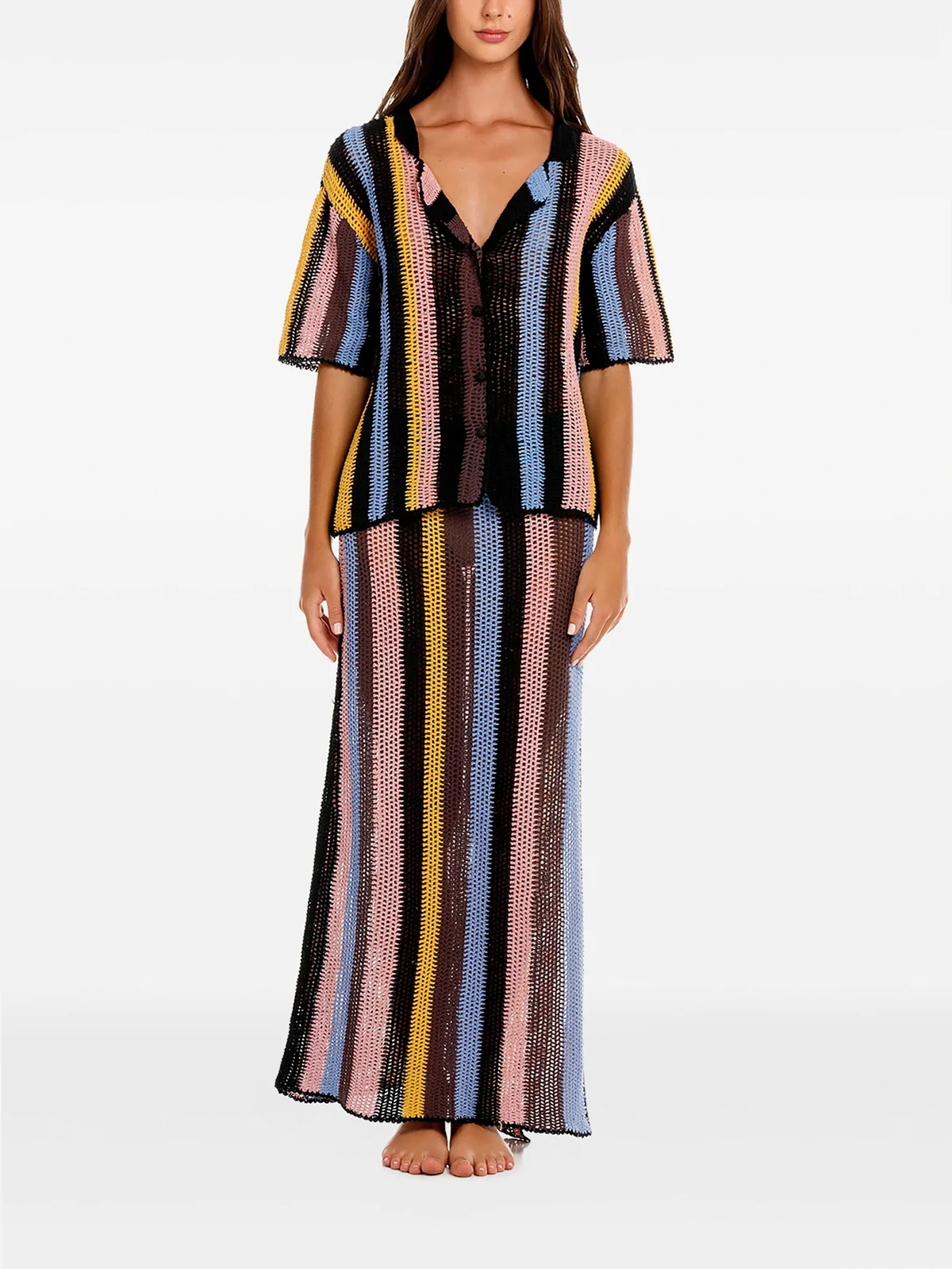 Agua Bendita Cyprus striped crochet beach cover-up