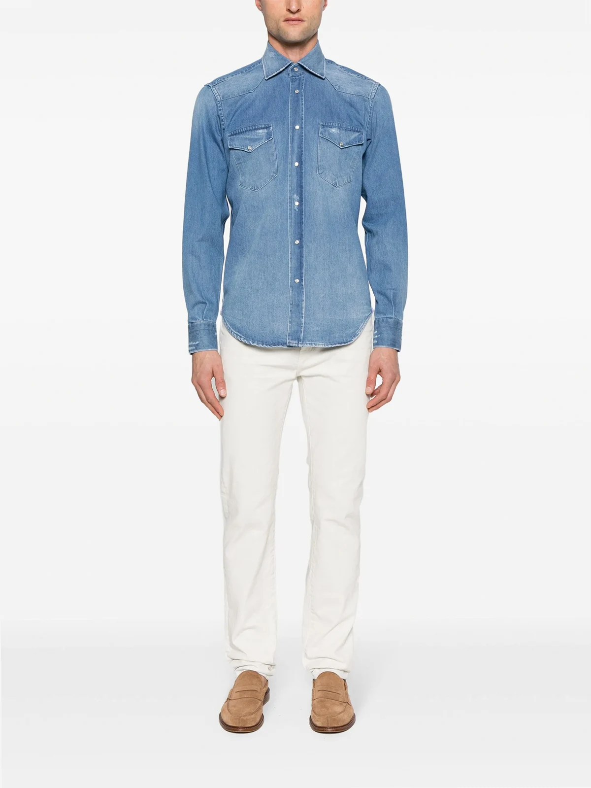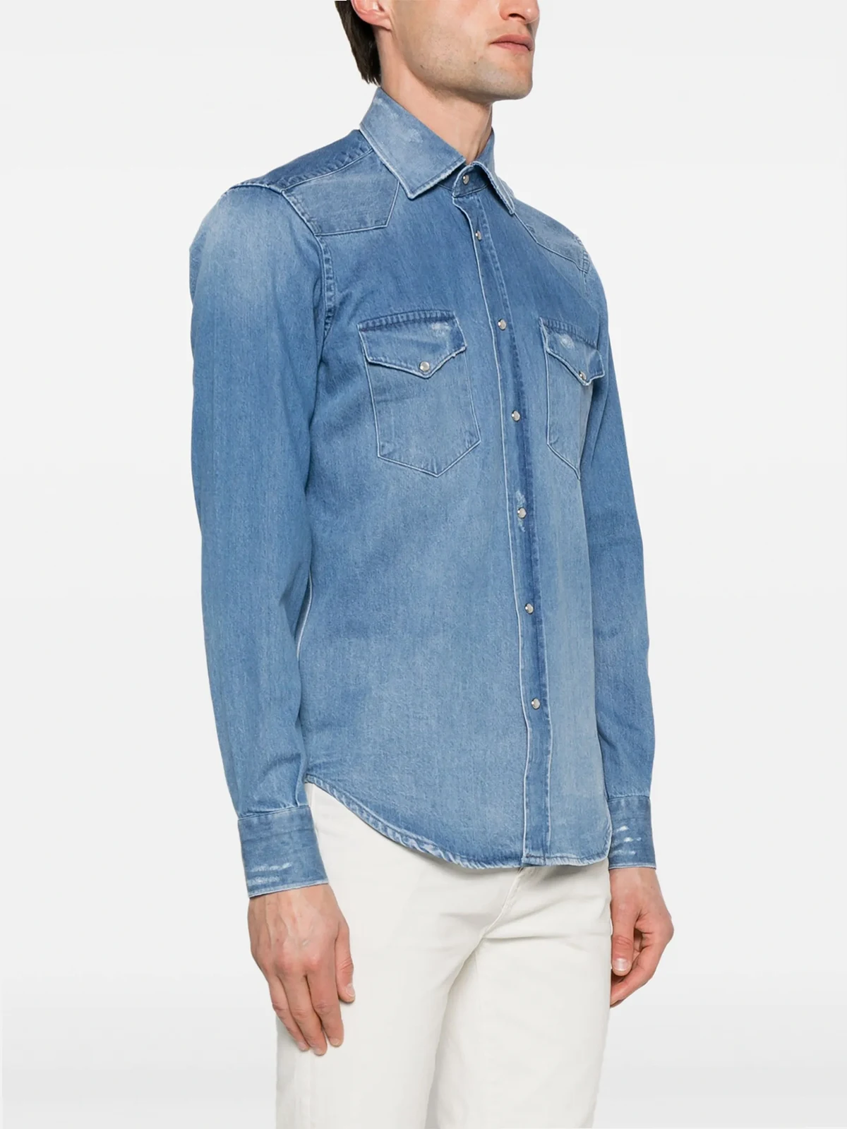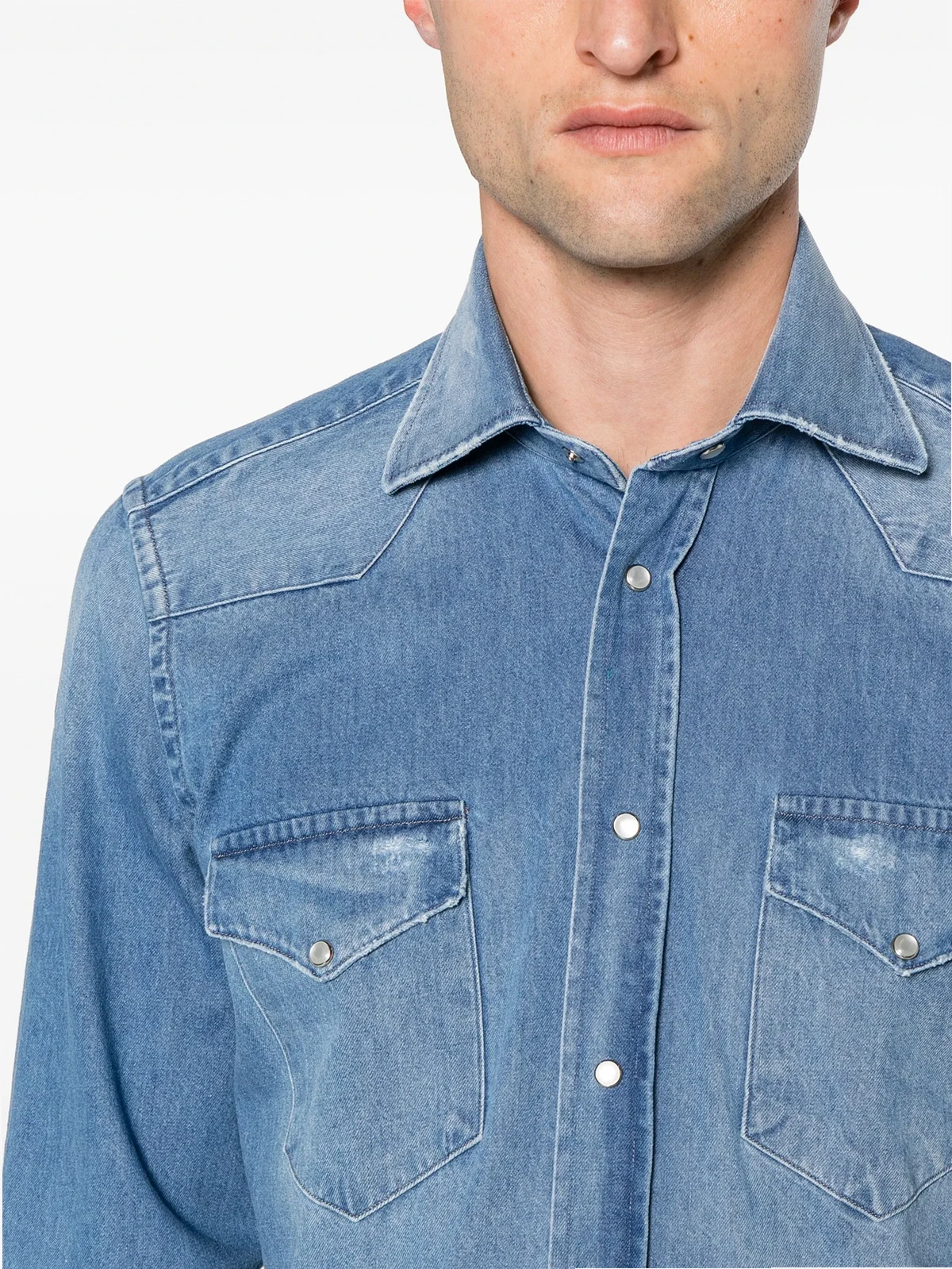 SARTORIO NAPOLI ripped-detailed panelled denim shirt