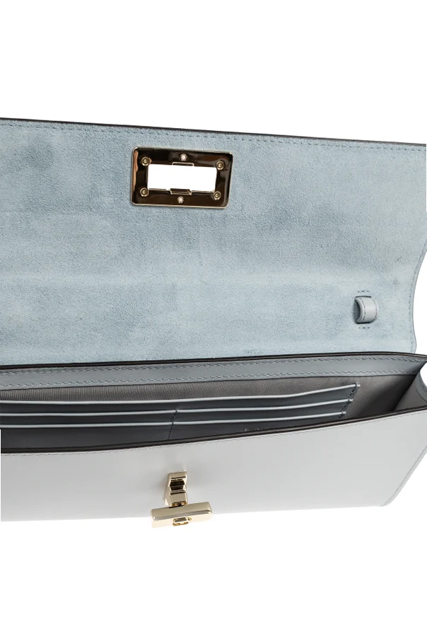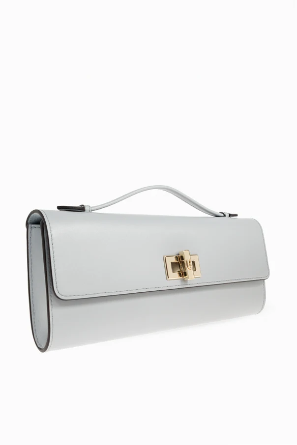 Its minimalist, unembellished exterior highlights refined simplicity, while a bold gold-tone twist-lock clasp graces the front flap, imparting a distinctively luxe accent. The structured, short top handle is seamlessly attached, allowing for elegant hand-held carry. Subtle by design, the Clara clutch bears no overt logo, further affirming its effortless refinement.