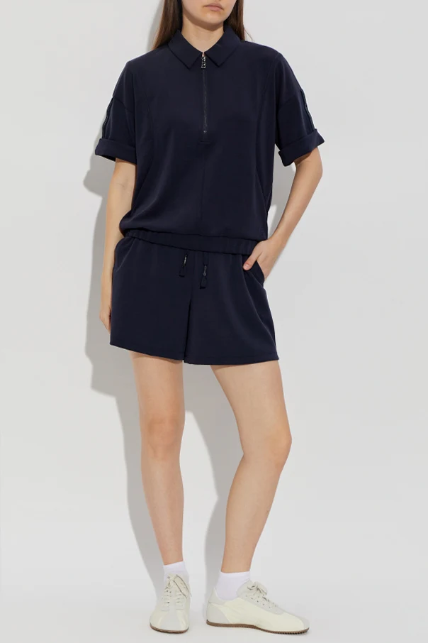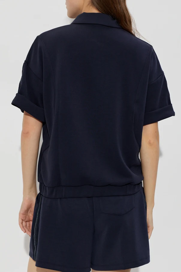 Elevate your everyday ensemble with the 'Finya' short sleeve polo in a refined, deep navy blue. Impeccably tailored in a relaxed silhouette, this piece features a smooth, soft-touch fabric crafted from an exquisite blend of performance fibers and modal for extraordinary comfort and flexibility. The elongated back hem and gently ruched bottom introduce a subtle sophistication, while the wide turn-up cuffs add a touch of modern ease.