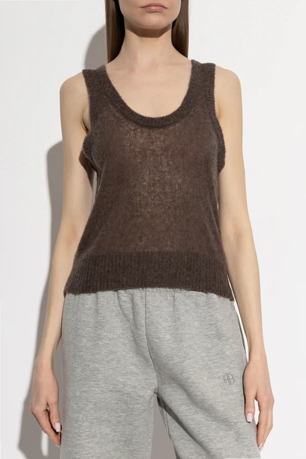 Experience understated refinement with this exquisite brown turtleneck top by American Vintage , tailored for the discerning woman. The minimalist silhouette features a relaxed, straight fit with broad shoulder straps for effortless sophistication. A gracefully rounded, deep neckline at the front and a subtly lowered back neckline lend contemporary allure, while ribbed trims add a polished finish.