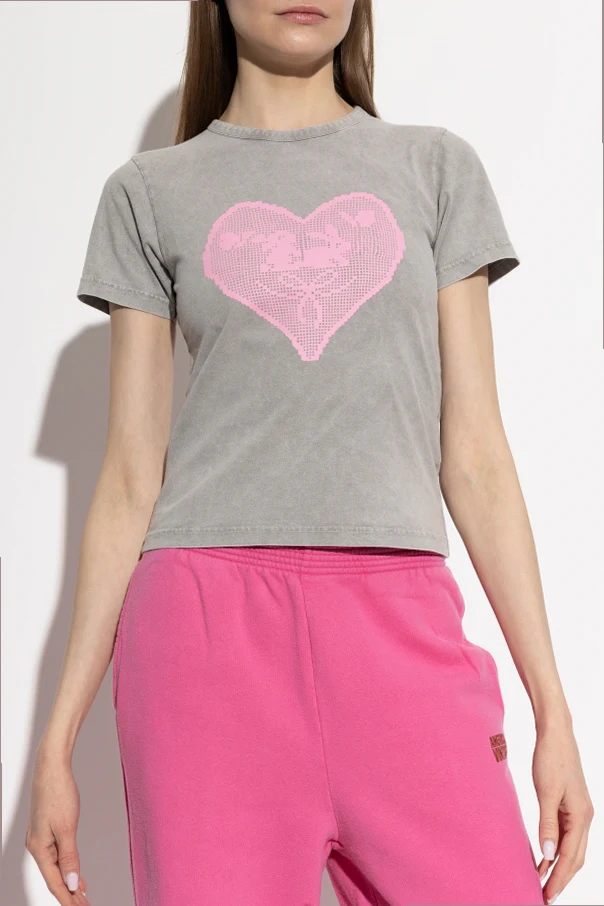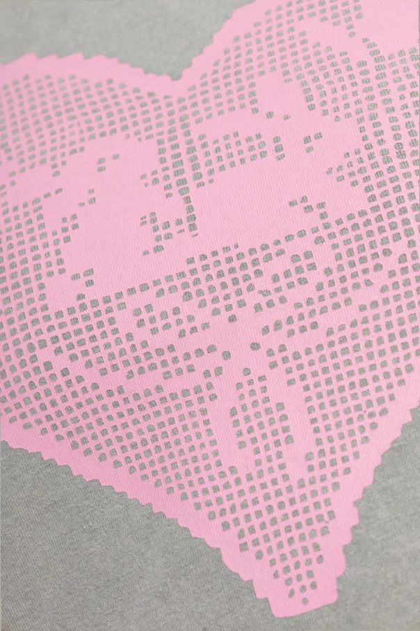 The centerpiece of this garment is a captivating light pink heart motif , artfully emblazoned on the front. Featuring a perforated, almost embroidered or pixel-rendered effect, the design radiates originality and elegance, effortlessly drawing attention without the need for overt branding. The back remains simple and unadorned, allowing the intricate craftsmanship of the visible seams to shine.