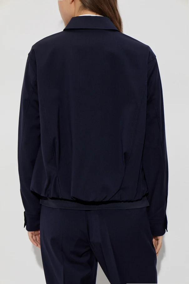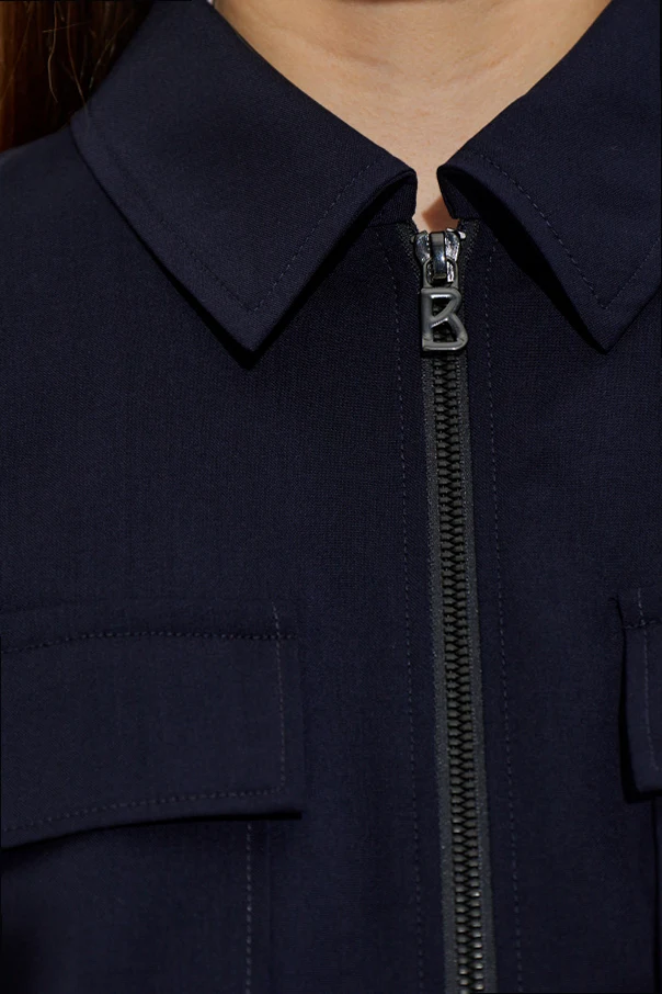 Distinctive features such as two substantial, flap chest pockets and a prominent metal zipper with a striking pull add a bold yet timeless touch. A straightforward shirt collar enhances the jacket’s versatile, classic appeal, making it an essential addition to any discerning wardrobe.