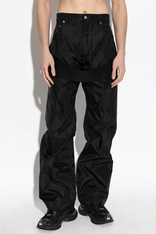 Immerse yourself in contemporary sophistication with these black trousers featuring bold decorative stripes. Masterfully crafted by Rick Owens , these pants epitomize avant-garde flair, seamlessly blending technical luxury with modern design.
