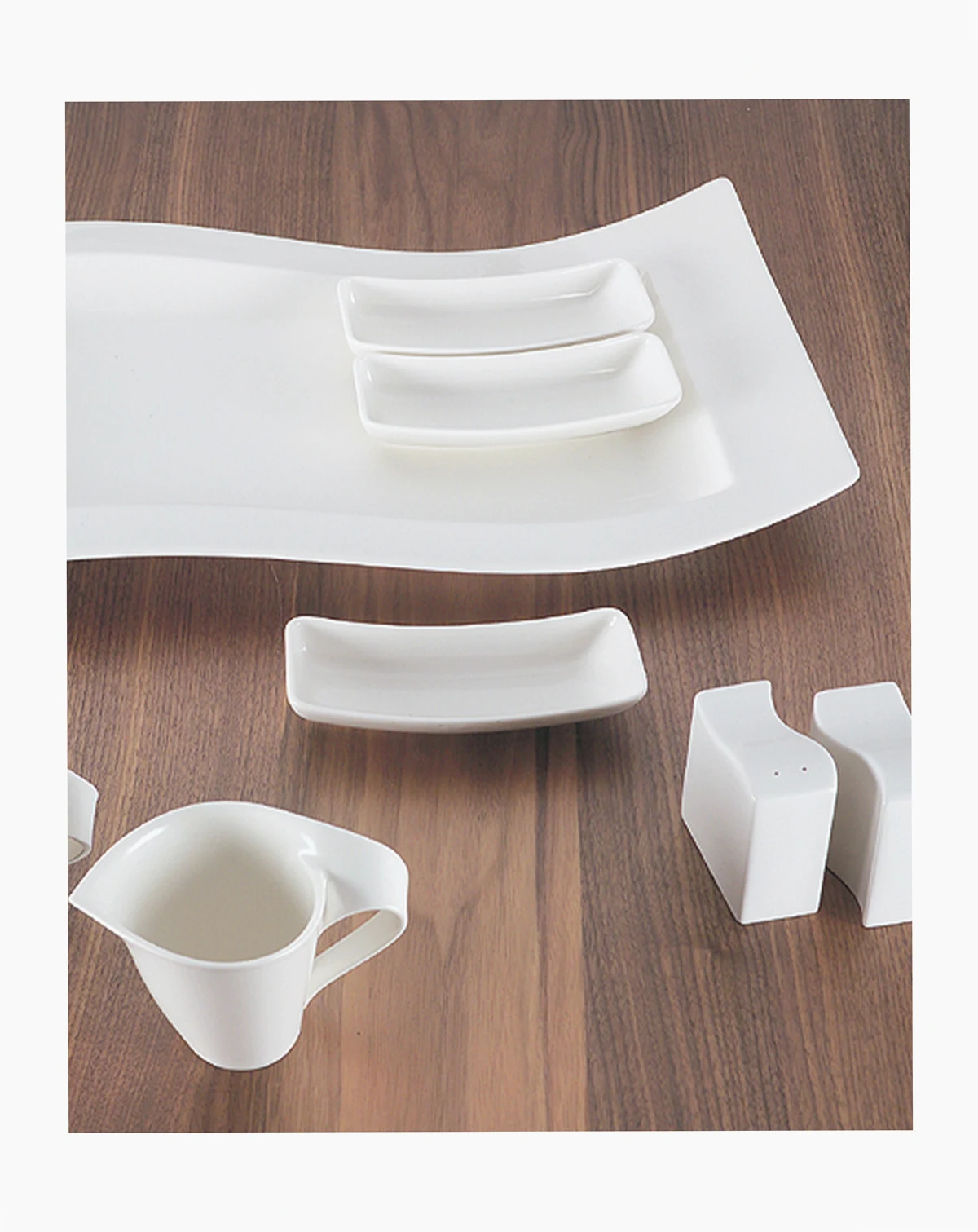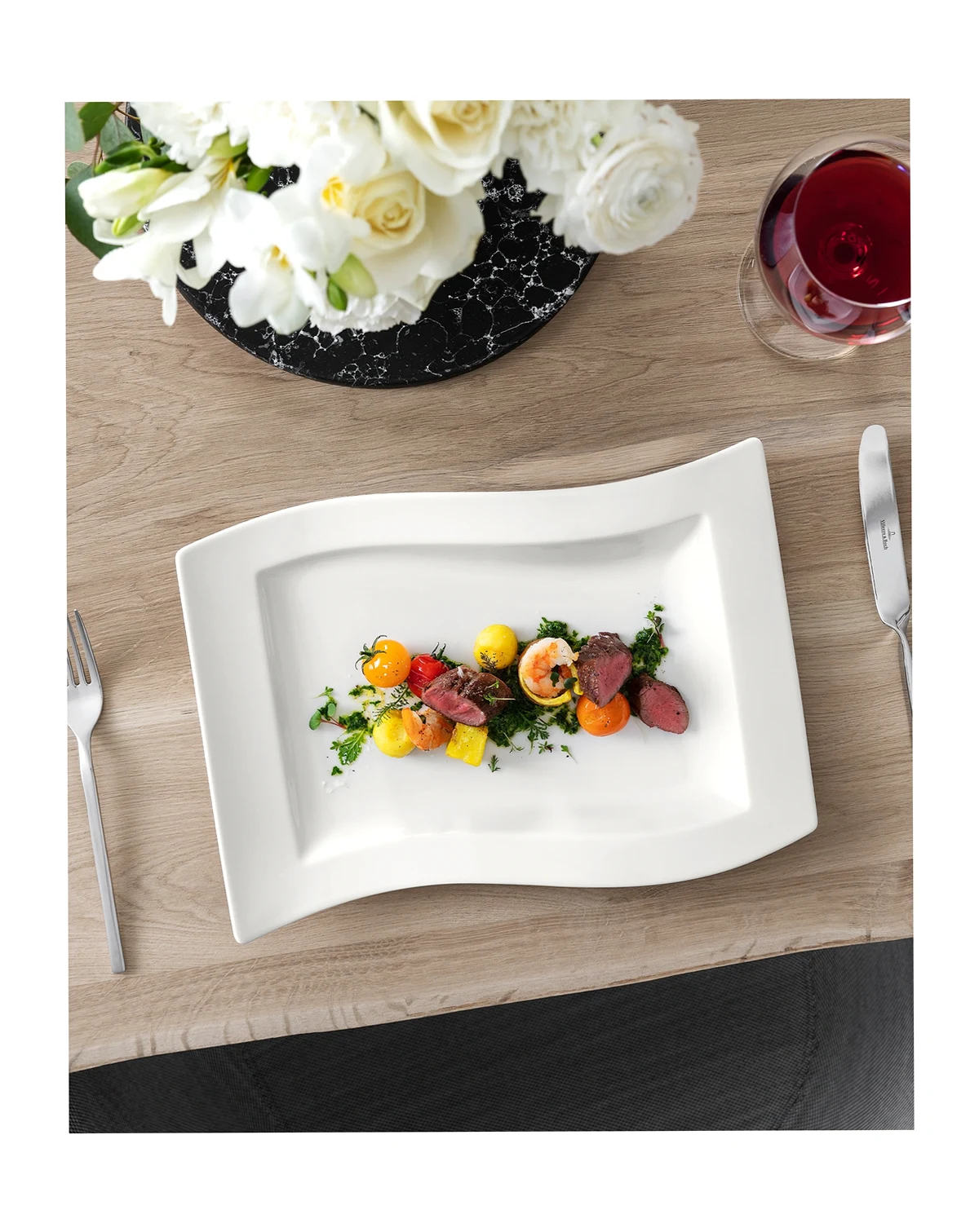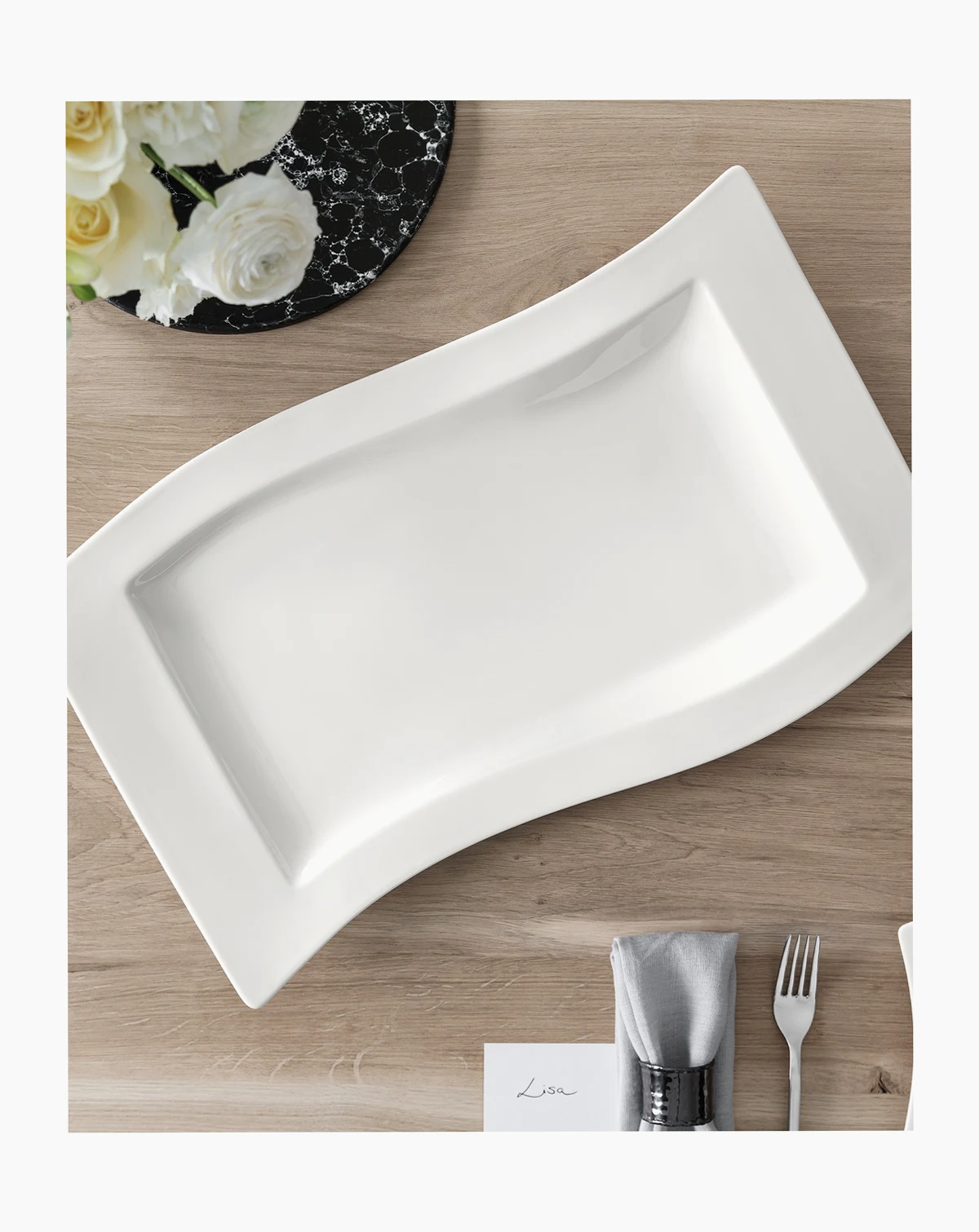 Explore new shapes for your table with the innovative New Wave serving platter, featuring unique, fluid curves in premium Villeroy & Boch porcelain.