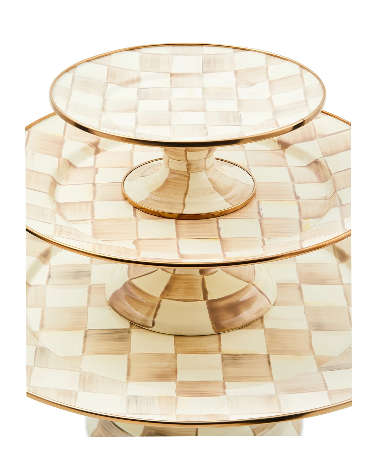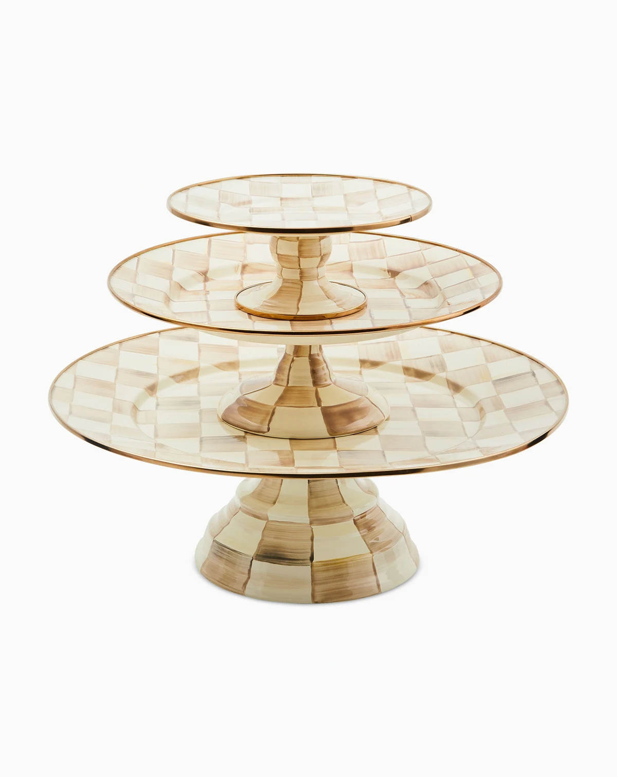 Serve nibbles at coffee time, appetizers before dinner or a delicious cake for dessert. No matter the offering, this Mocha Check pedestal platter from Mackenzie-Childs presents it in style.