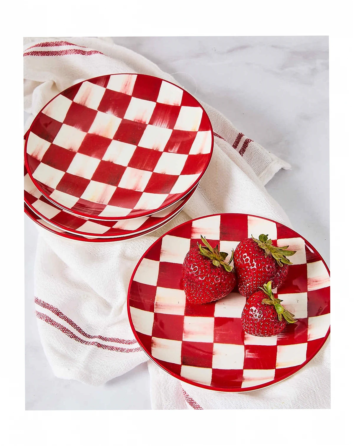 MacKenzie-Childs Cherry Check Appetizer Plates, Set of 4