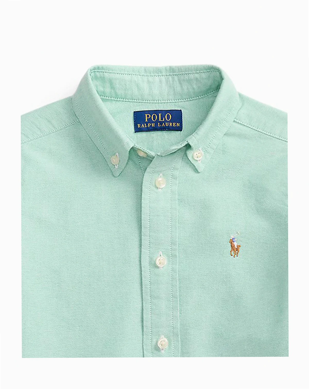 Designed with a lightweight construction and a button-down collar, this Polo Ralph Lauren shirt serves as a comfortable, classic staple. The multicolored iconic Pony embroidery delivers a signature finish.