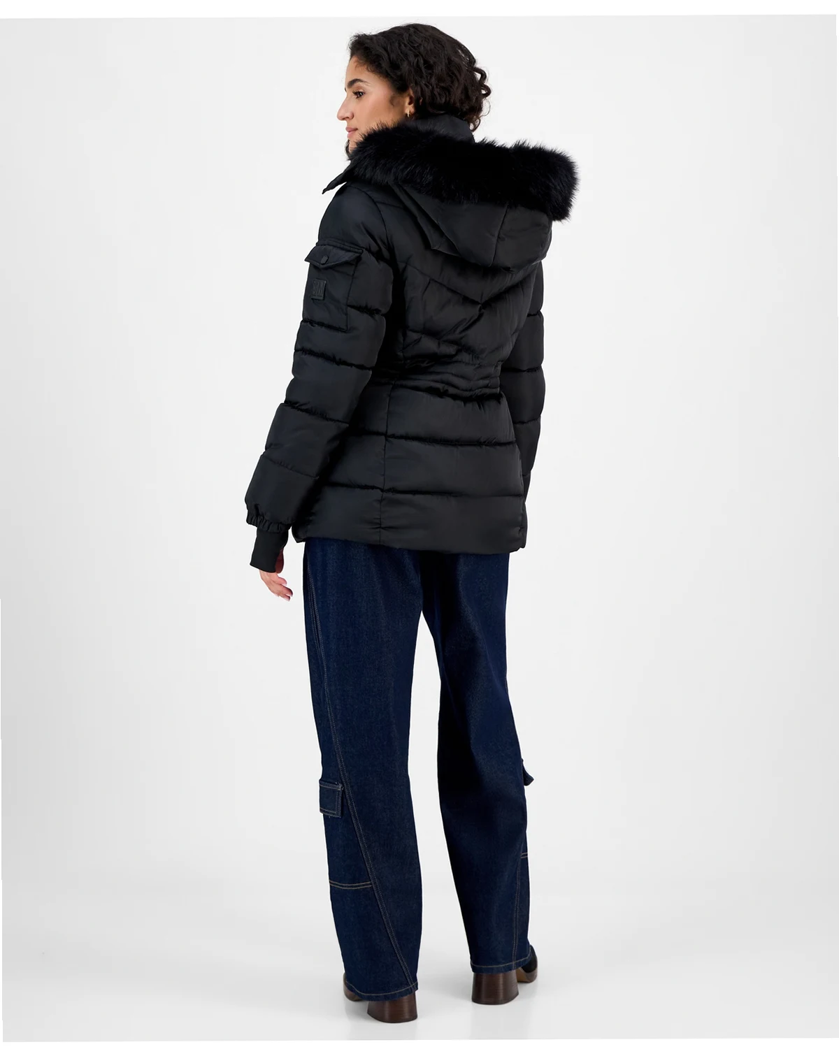 Steve Madden Women's Hooded Zip-Front Puffer Coat