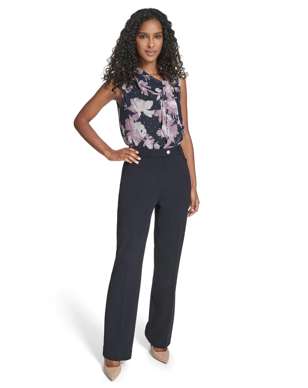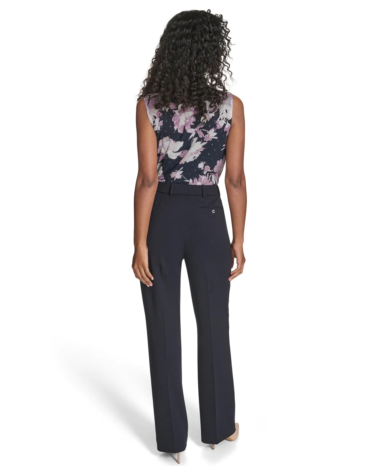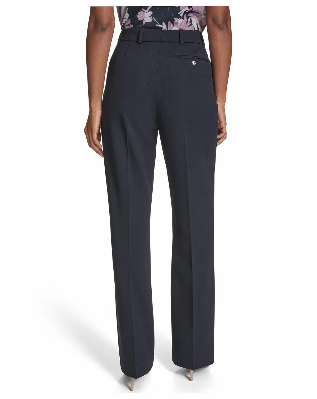 Experience a modern fit in these high-waisted pants from Calvin Klein, designed with a flattering silhouette. A full length and straight leg create an elongating line. Front and back pockets offer convenient storage while maintaining a clean look.