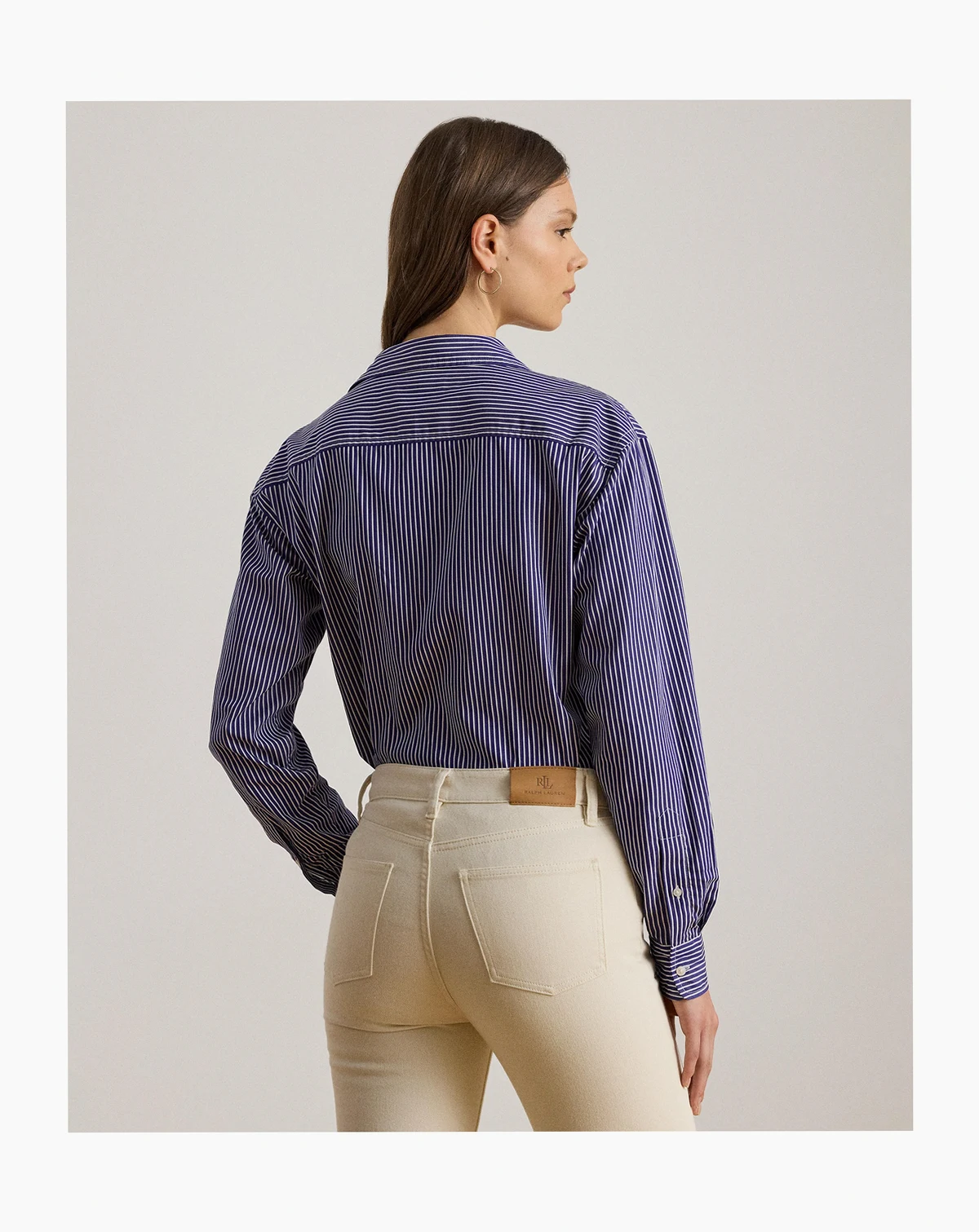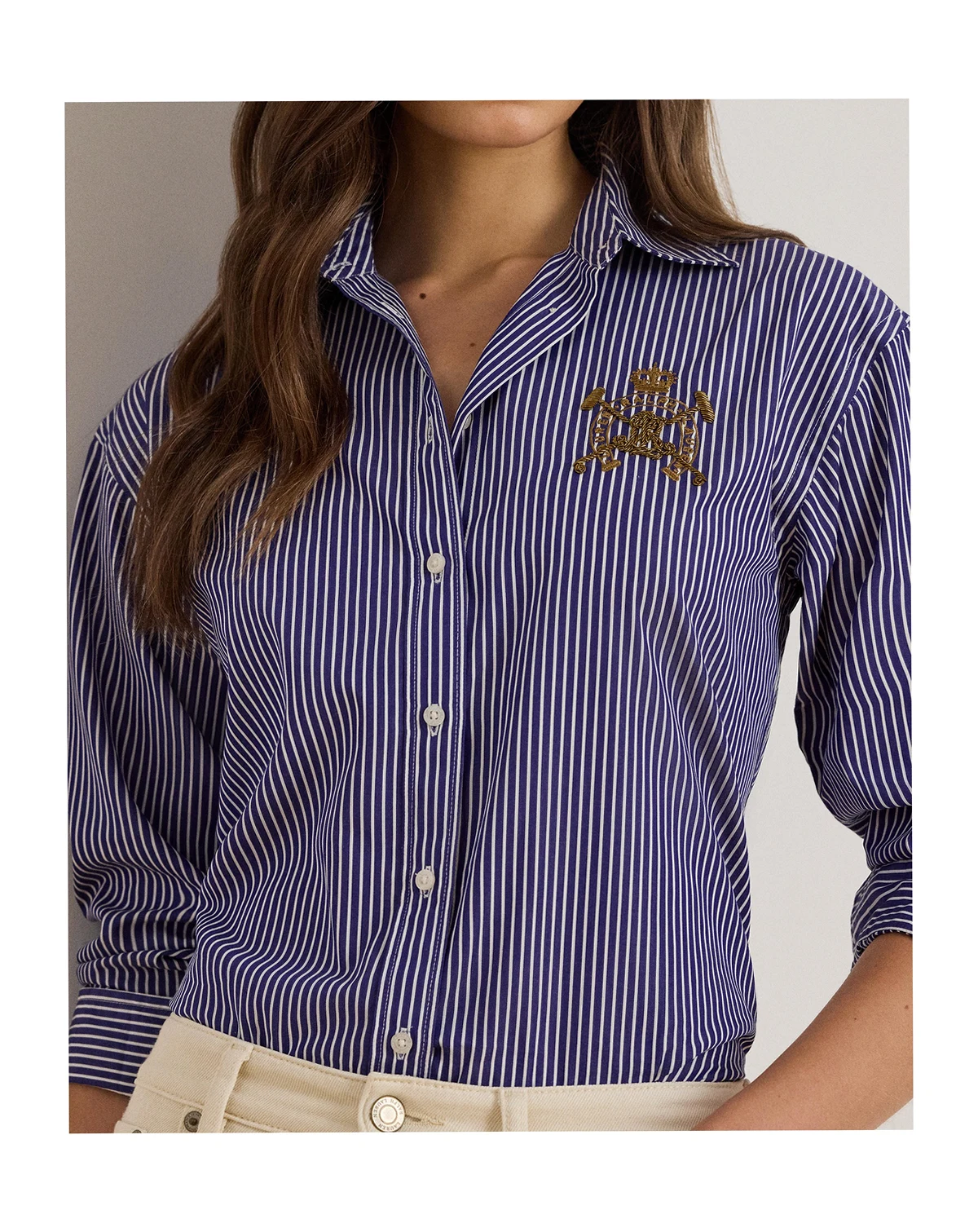 Providing unmistakable style, the equestrian-inspired embroidered logo at the chest distinguishes this relaxed-fit shirt from Lauren Ralph Lauren. Crafted with crisp broadcloth and yarn-dyed stripes, it offers a comfortable, easy fit.