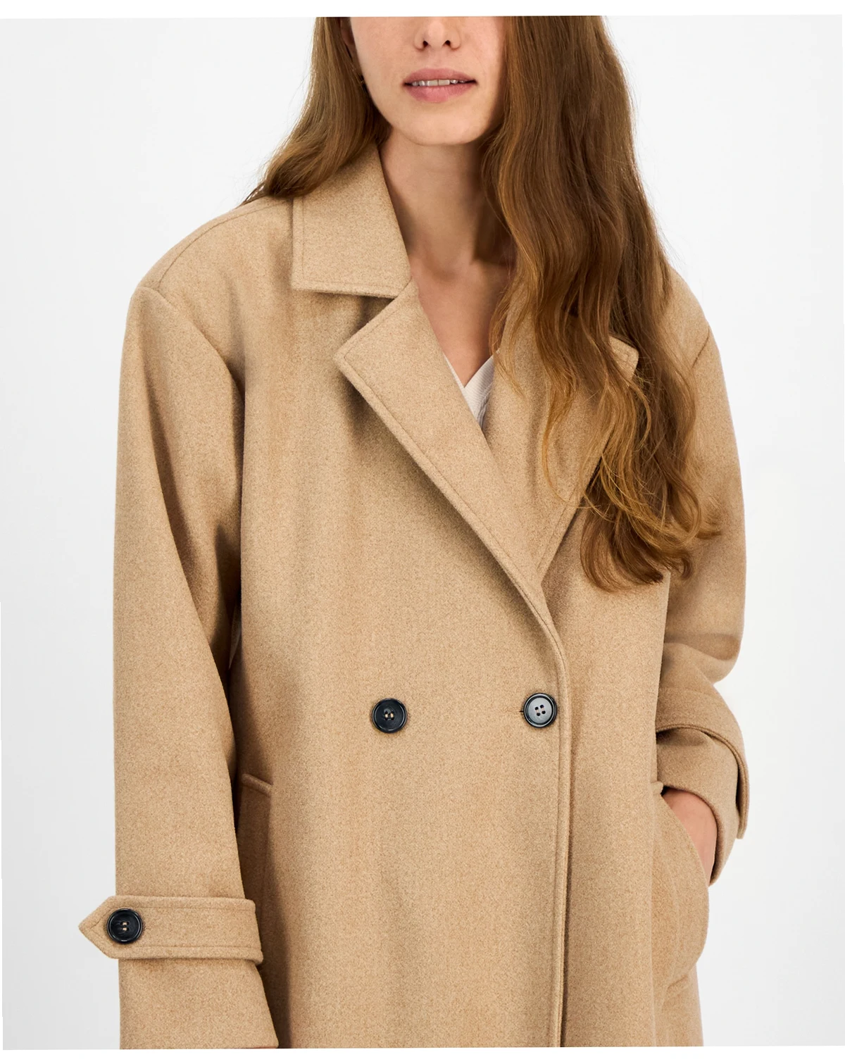 Jou Jou mixes up your look with this maxi-length coat designed with a chic double-breasted front.