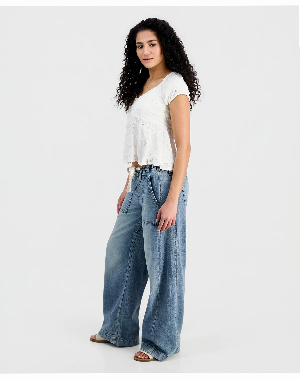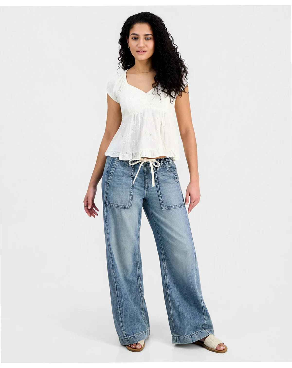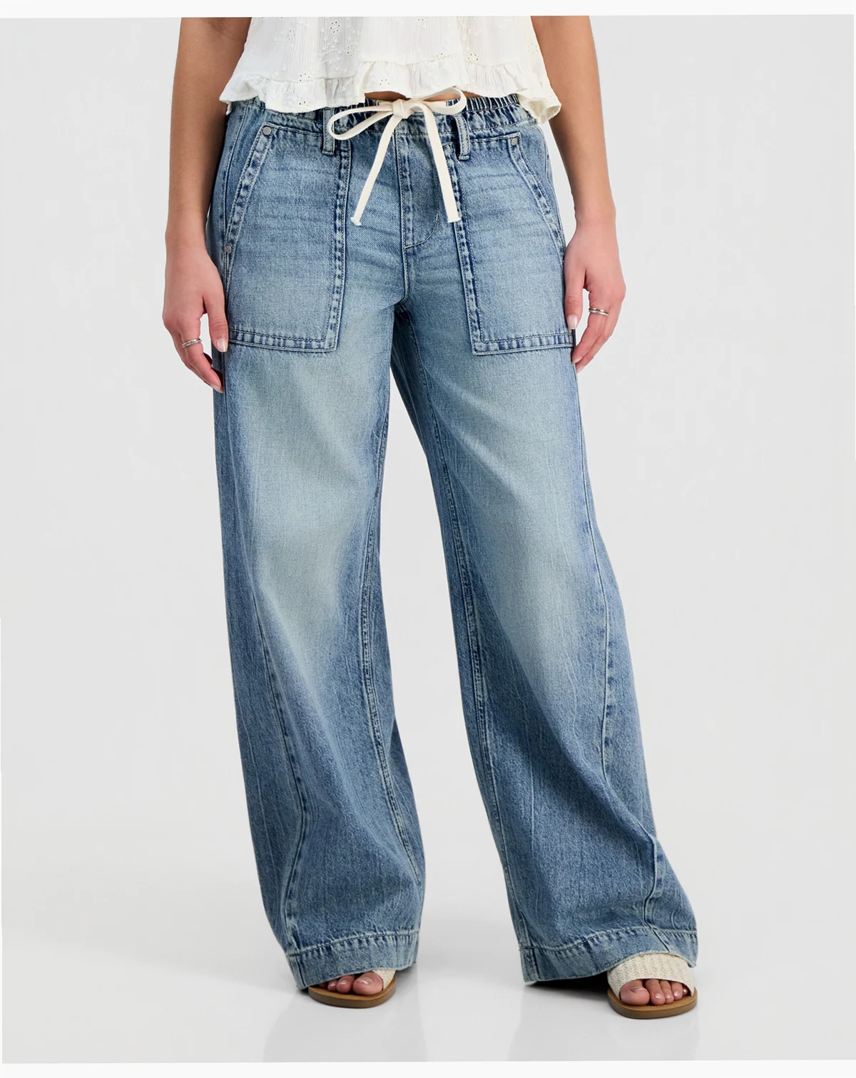 Celebrity Pink Juniors' Lightweight Tie-Waist Wide-Leg Jeans