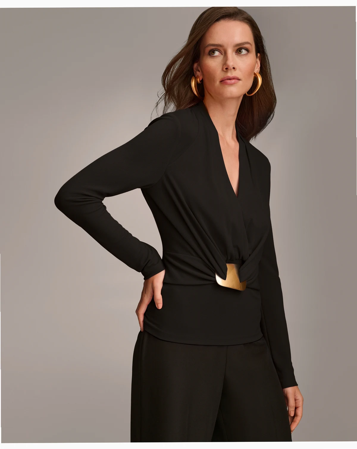 Donna Karan New York Women's Faux-Wrap Hardware Top