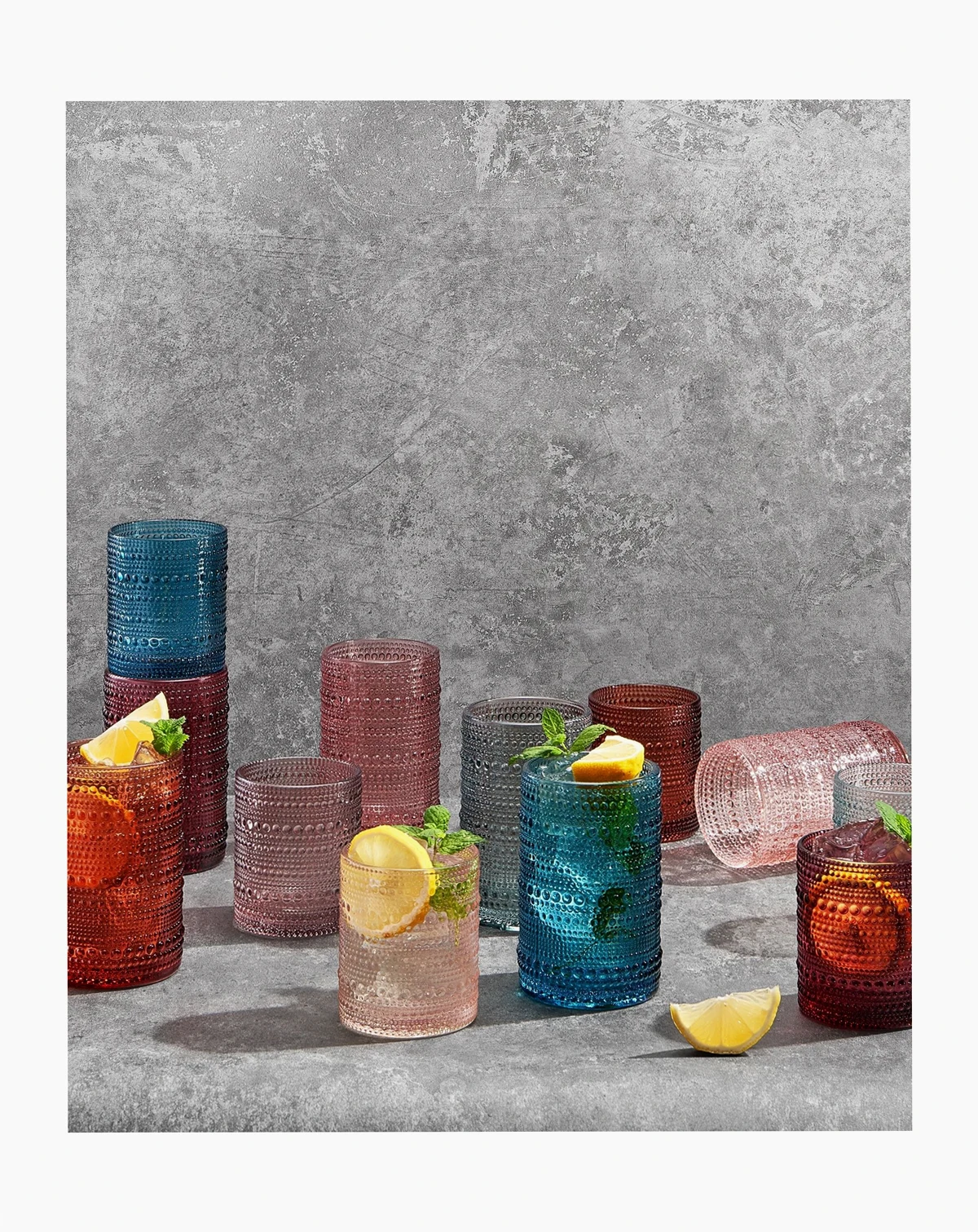 This exquisite glassware set features a pastel summer color palette, exuding tranquility and adaptability, perfect for any occasion or decor style. Whether for a formal dinner or a quiet evening at home, these glasses add refinement to your table.