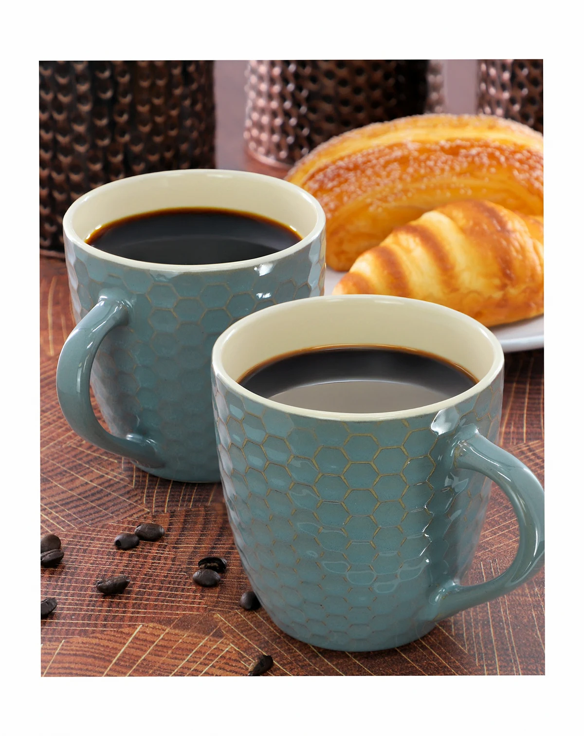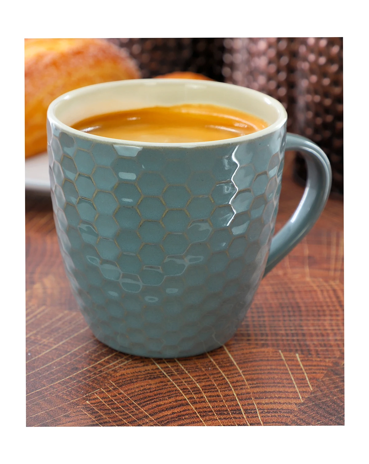 The Honeycomb mug set by Elama will make you feel closer to nature with each sip of your favorite drinks. These stylish cups feature a honeycomb debossed design dressed in earthy tones, laying underneath a sleek glossy finish. These captivating beauties will add charm and flair to your favorite drinks.