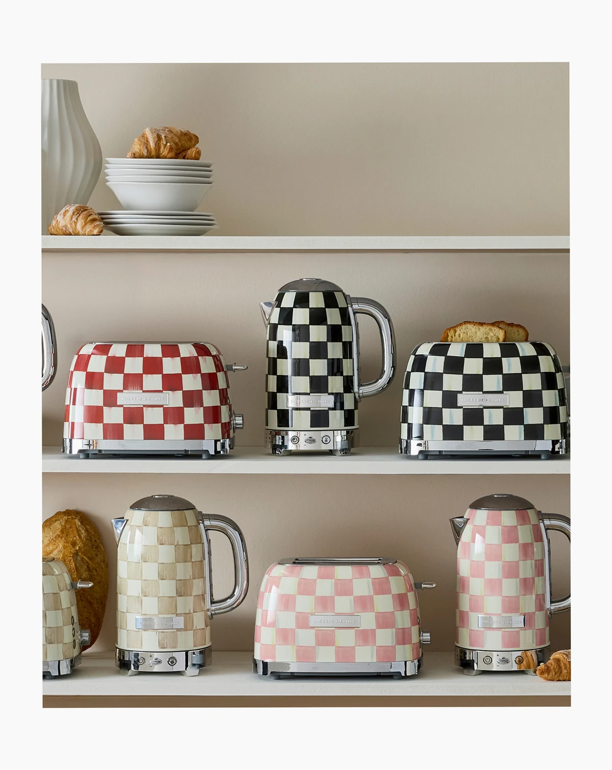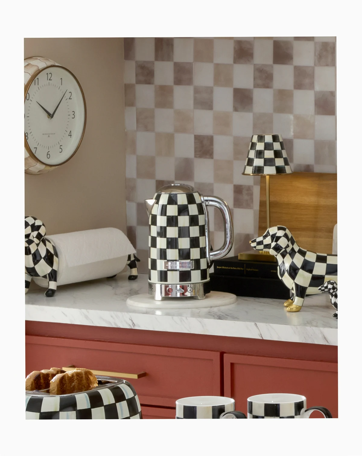 The Courtly Check Electric Kettle from MacKenzie-Childs has us bubbling over with excitement. Featuring an iconic check pattern on sleek stainless steel, you can turn an everyday essential into a statement piece. Designed for both function and flair, it's the perfect way to bring color and charm to your kitchen.