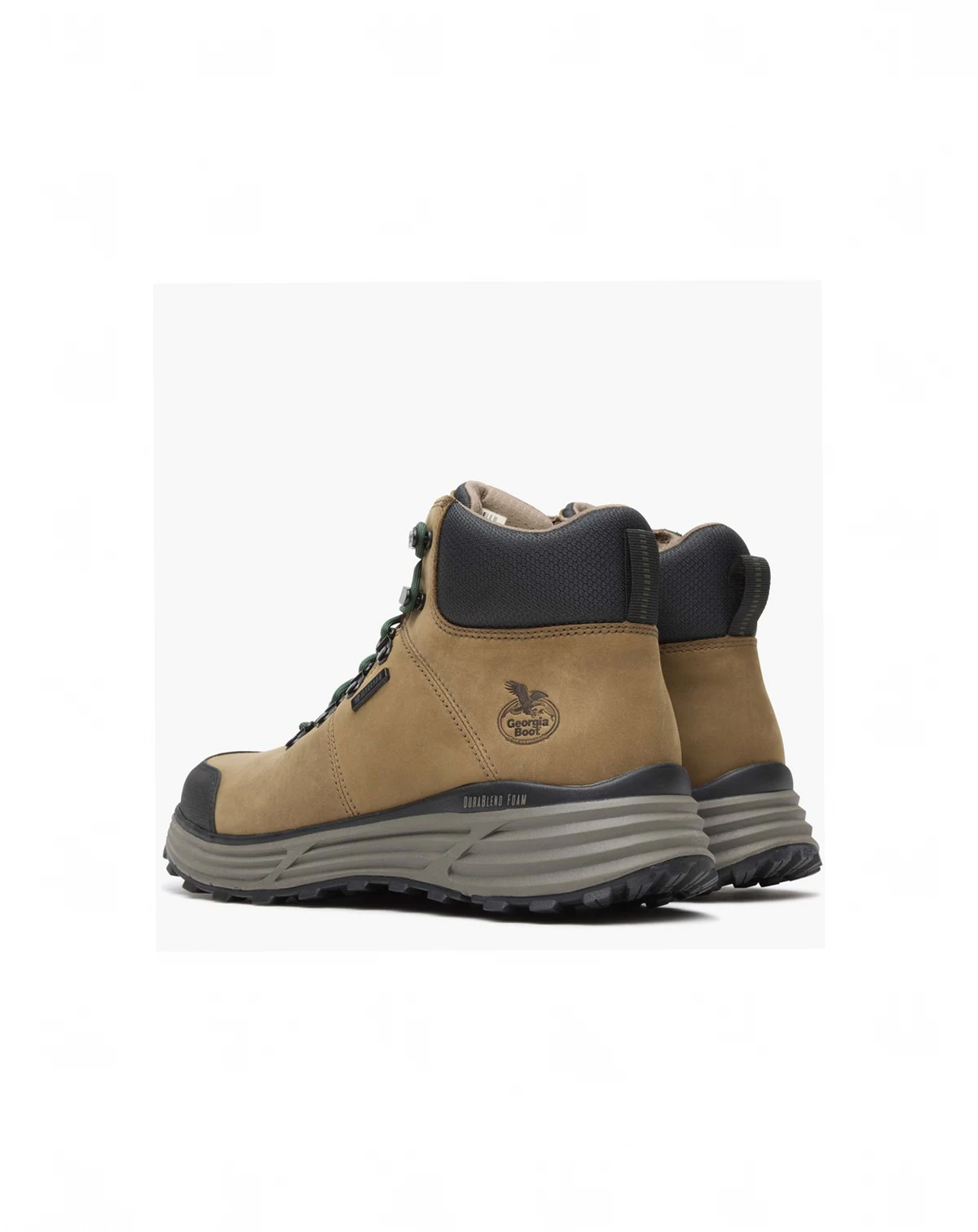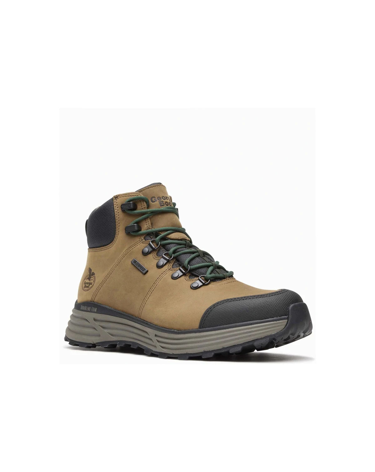 The Georgia Boot DuraBlend Sport waterproof work hiker will keep your feet protected and supported without weighing you down. The upper on this lightweight boot is crafted from premium full-grain leather in a light-brown color with green laces to accent. The interior of this lace-up work boot is lined with a high-performance mesh material and is equipped with the Georgia Waterproof System. The AMP X-Lite removable polyurethane insole provides responsive cushioning and shock absorption with each step. The foundation of this 6-inch round-toe work boot includes a fiberglass shank, an abrasion-resistant DuraBlend midsole, and a heat, , abrasion, and slip-resistant Carbo-Tec Rubber outsole. This boot meets ASTM F2892 electrical hazard standards for soft toe footwear..