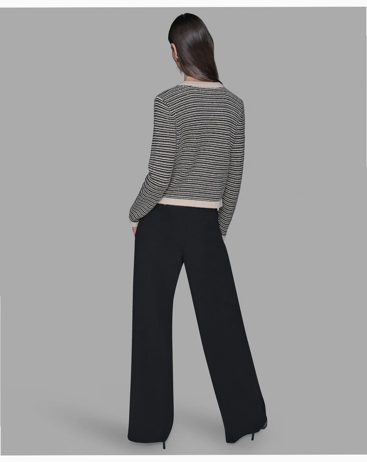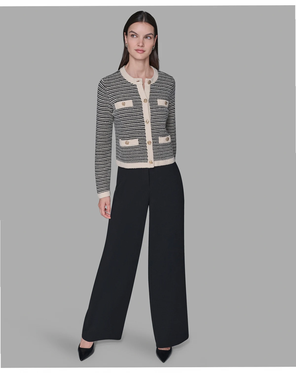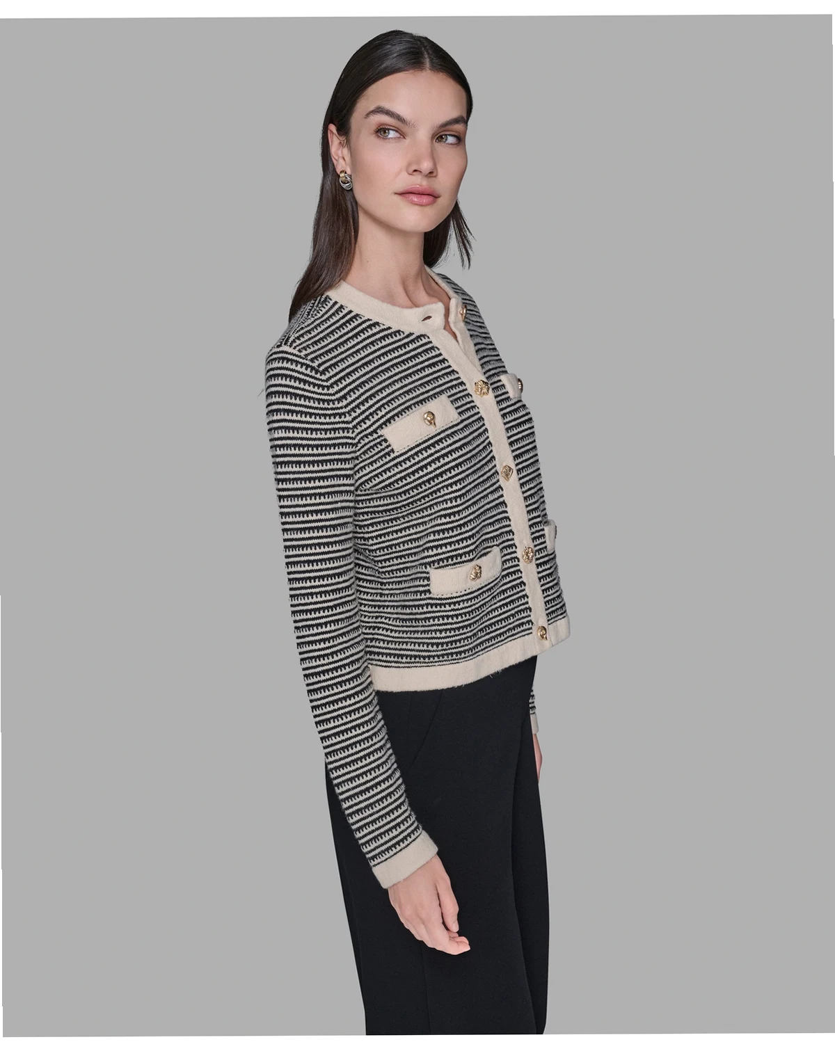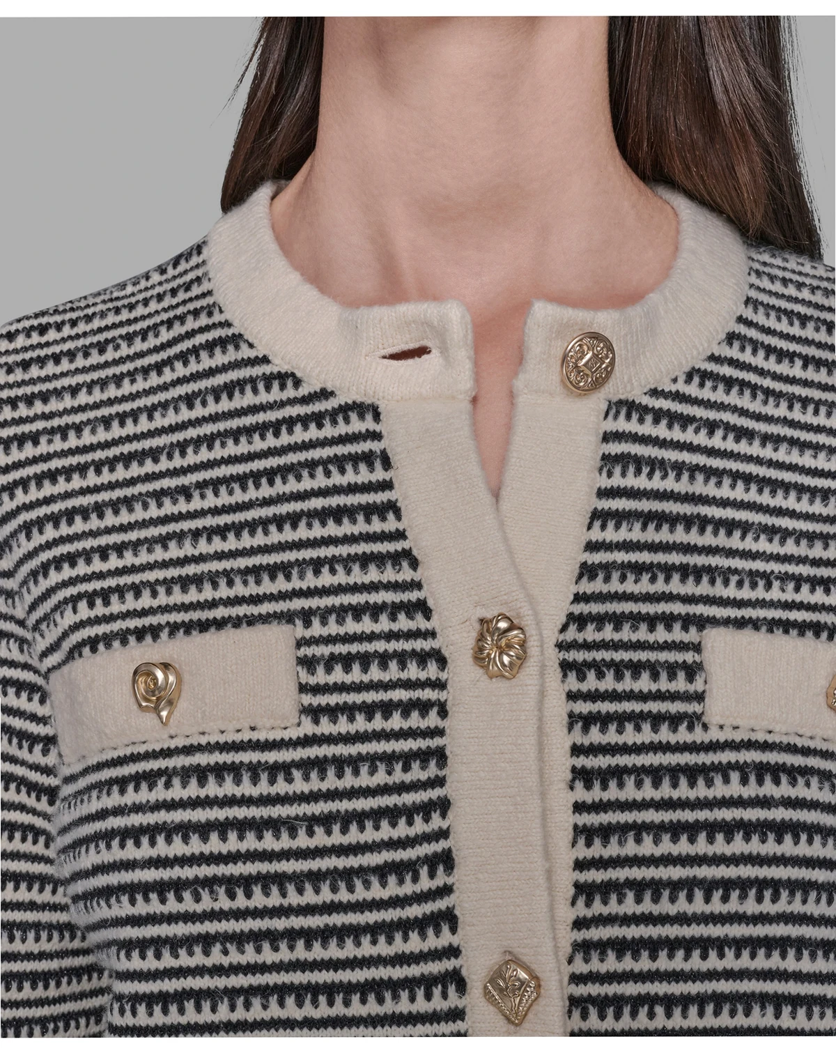 KARL LAGERFELD PARIS Women's Striped Crewneck Cardigan Sweater
