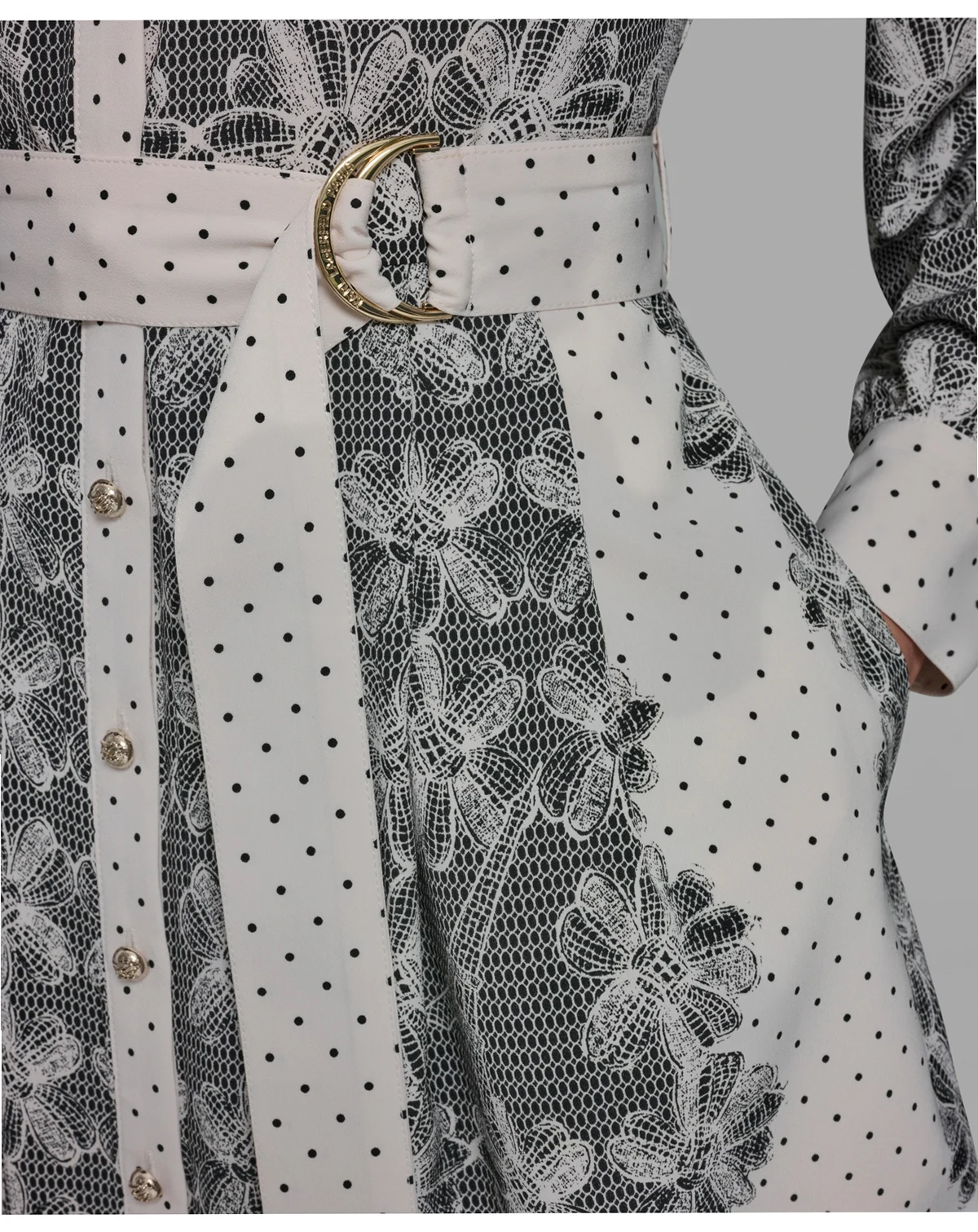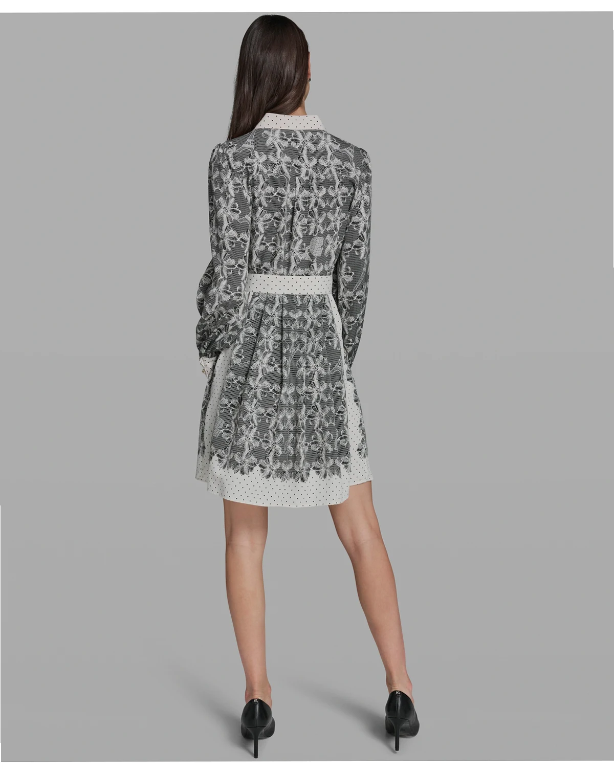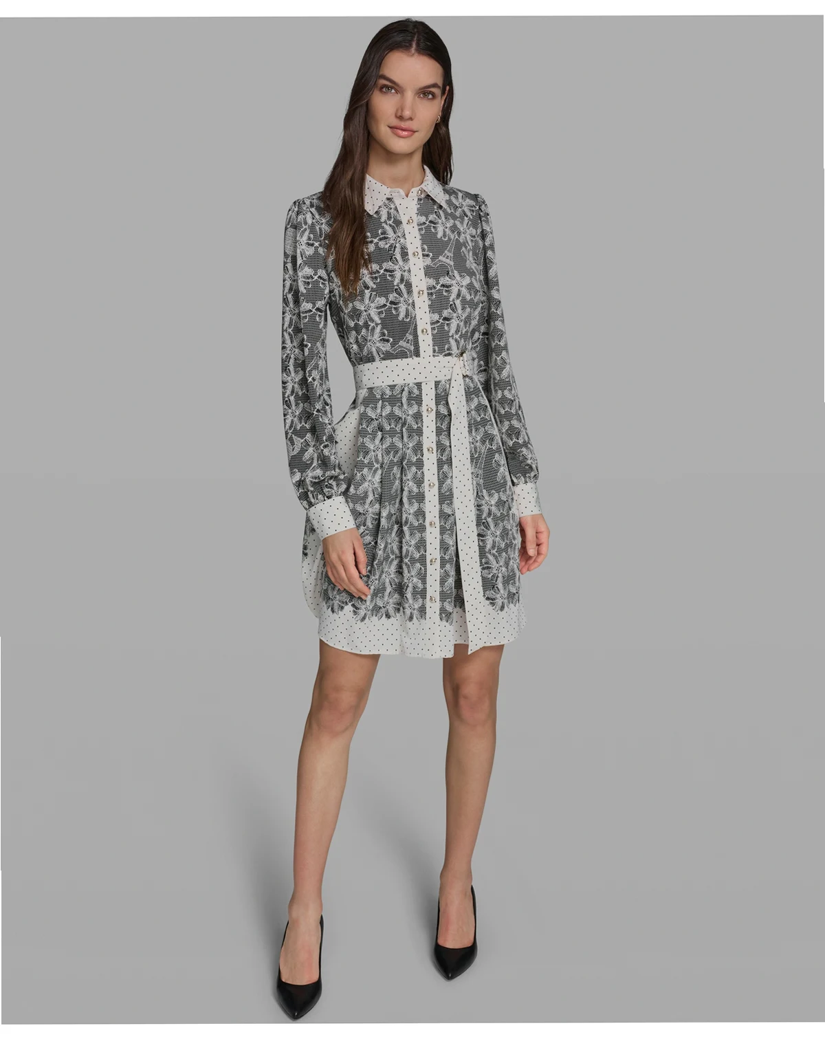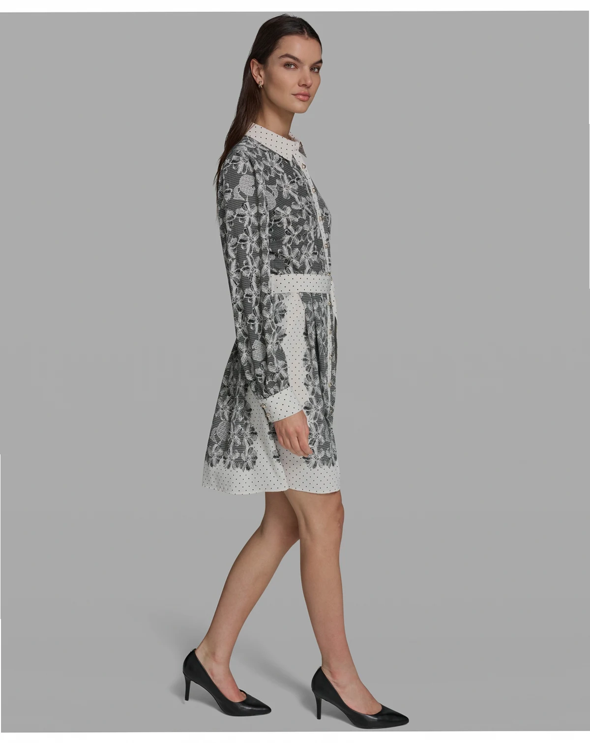 KARL LAGERFELD PARIS Women's Lace Print Collared Shirt Dress