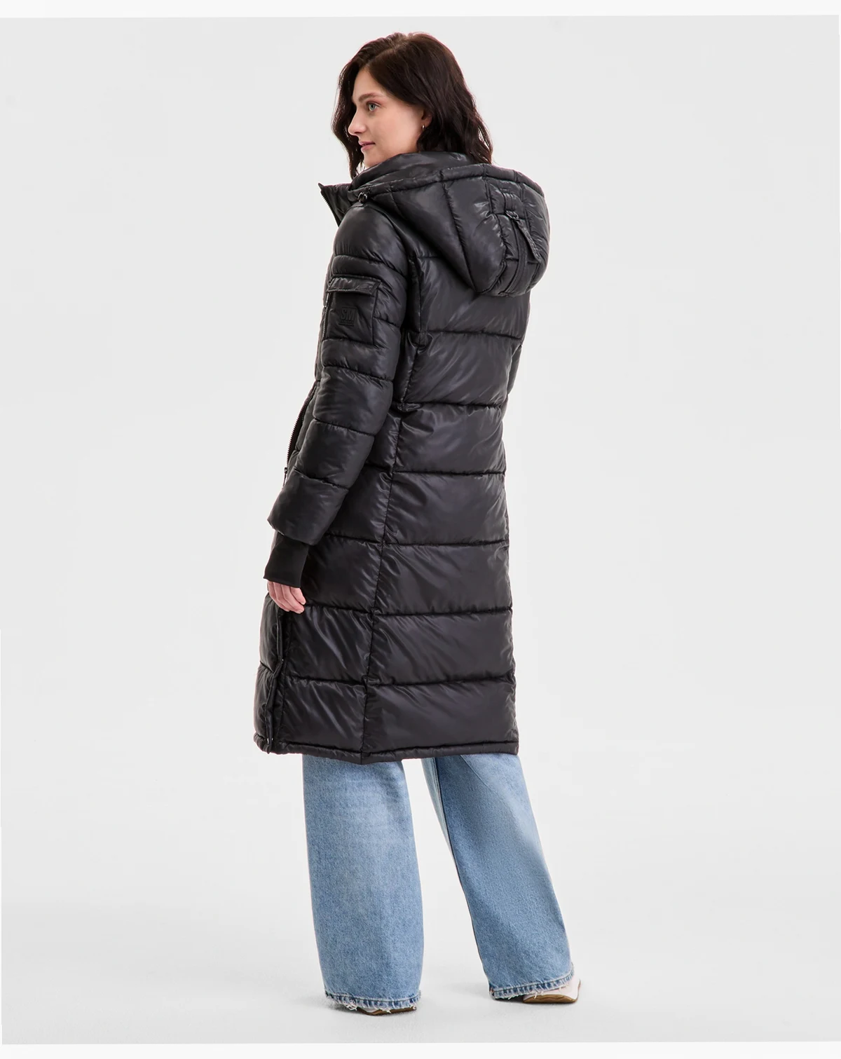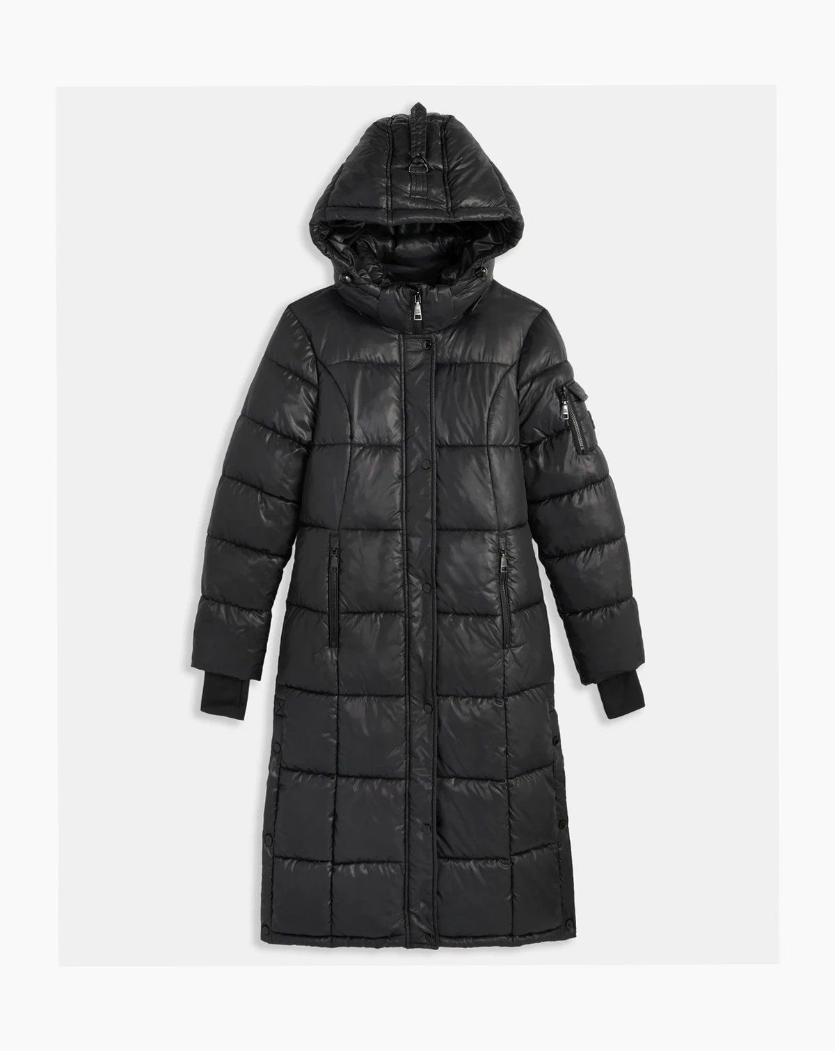 Steve Madden Women's Shiny Hooded Maxi Puffer Coat