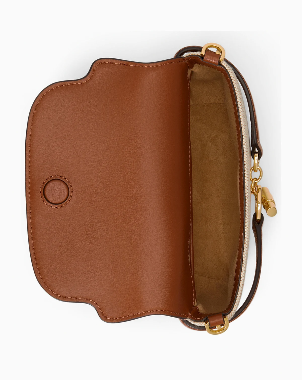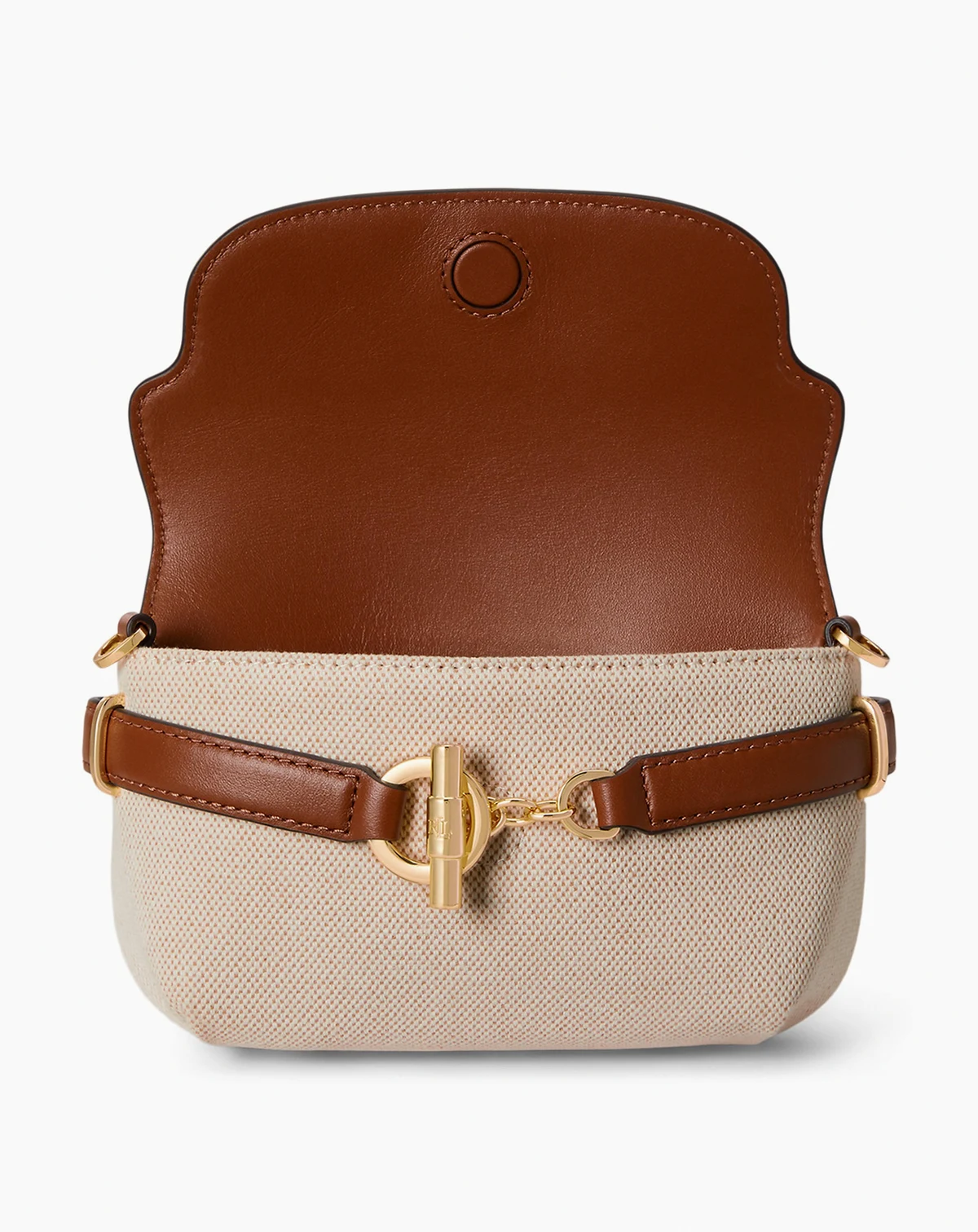 Showcase signature style with this curved compact crossbody from Lauren Ralph Lauren, featuring a distinctive belting detail at the front. Crafted from cross-dyed canvas and supple leather, its design is perfect for carrying small essentials.