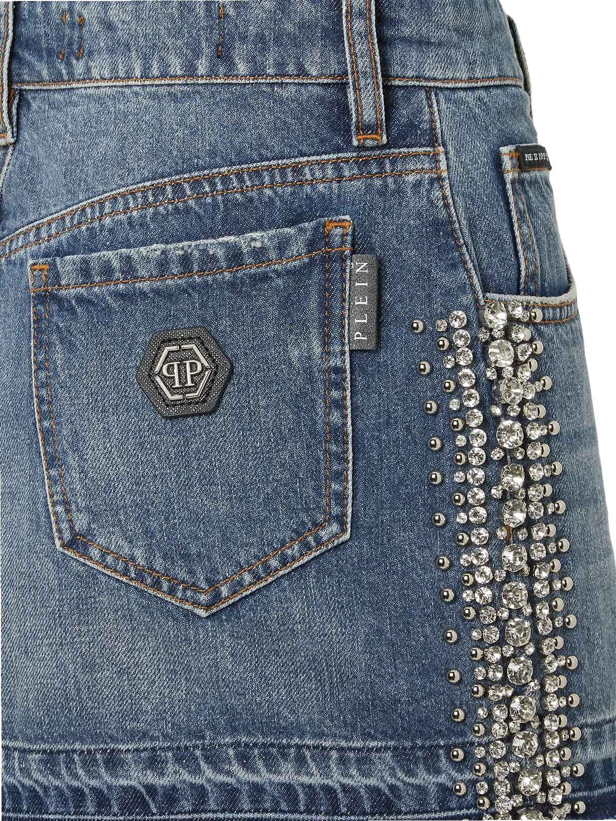 Philipp Plein rhinestone-embellished denim skirt