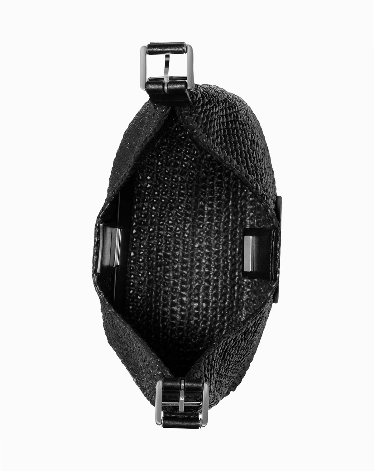 Small-sized bag; 9-1/2"W x 3-1/4"H x 9-3/4"D (width is measured across the bottom of handbag); 0.60 lb. approx. weight; Silhouette is based on 5'9" model