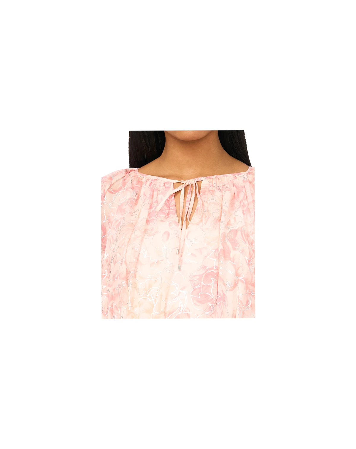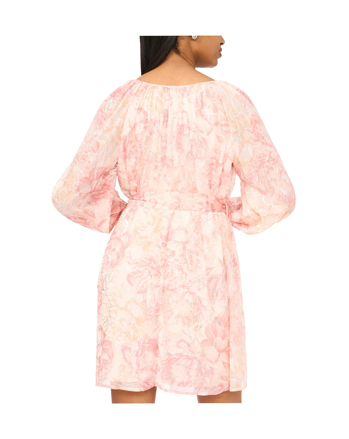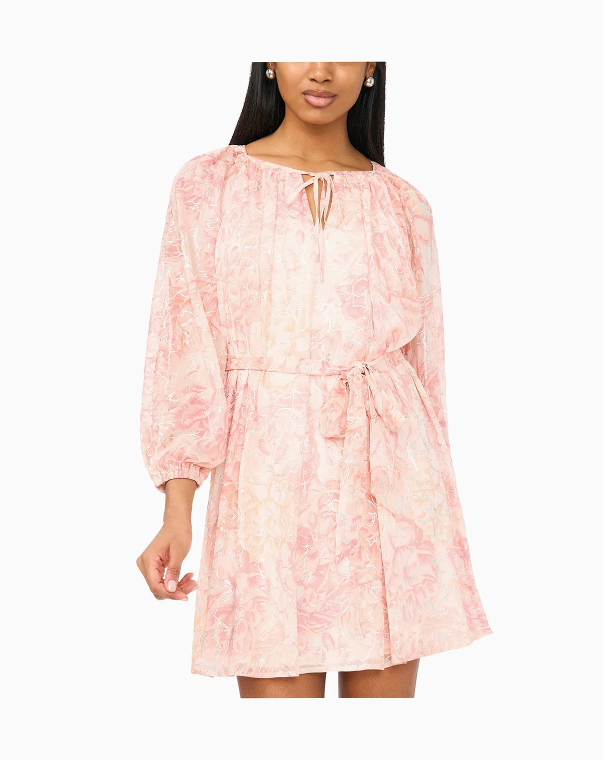 MSK Petite Printed Long-Sleeve Round Neck Dress