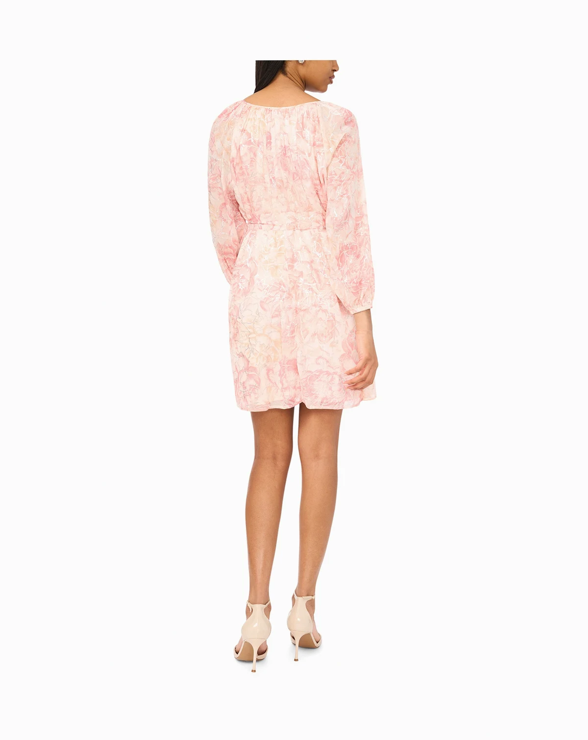 Comfortable elegance highlights this MSK dress with long-sleeves and a round neck for easy wear. The flared skirt enhances movement, and the loop-and-button closure at the back maintains a secure fit. Fitted through the chest and waist, the dress supports a beautiful flow.