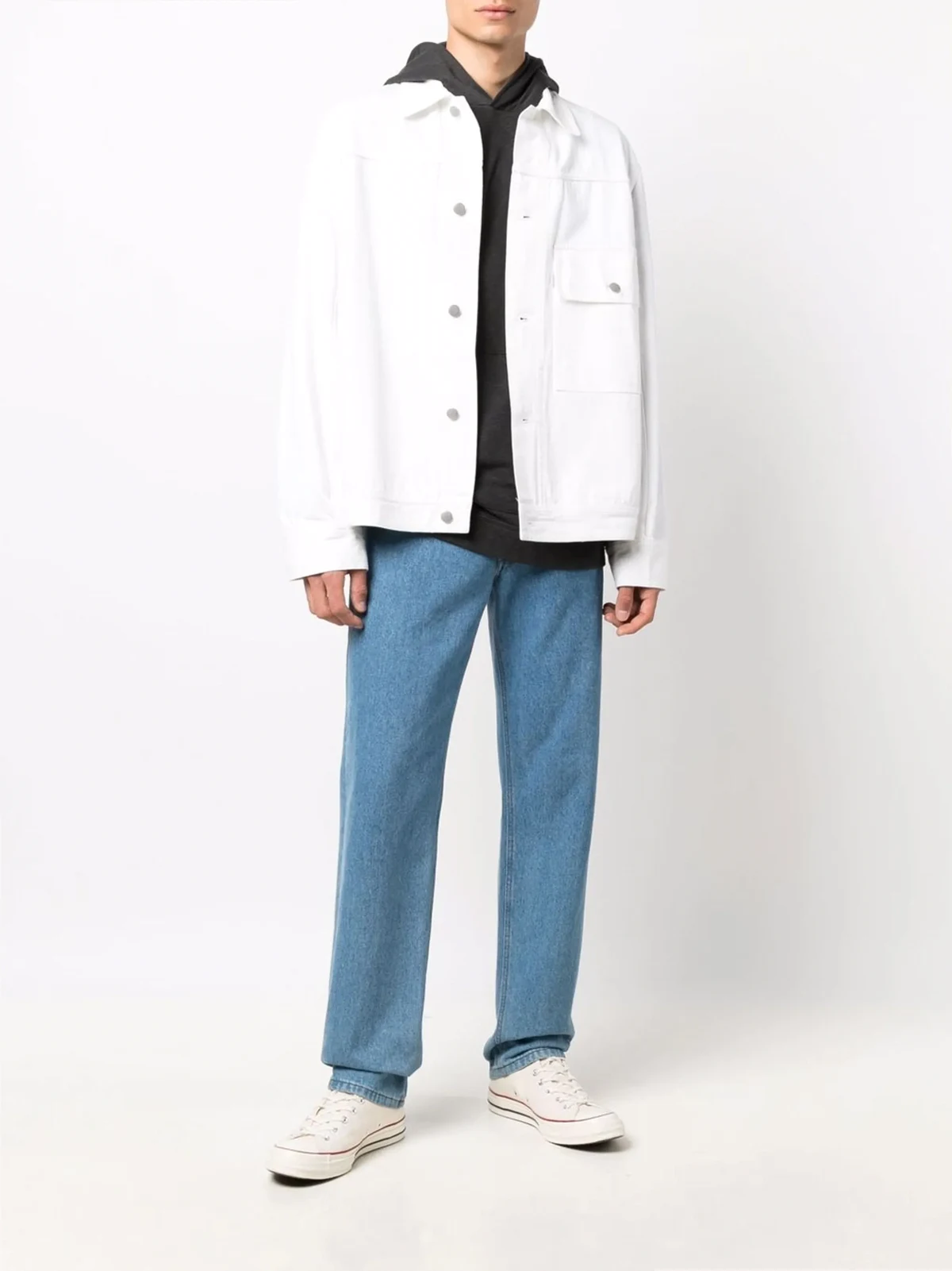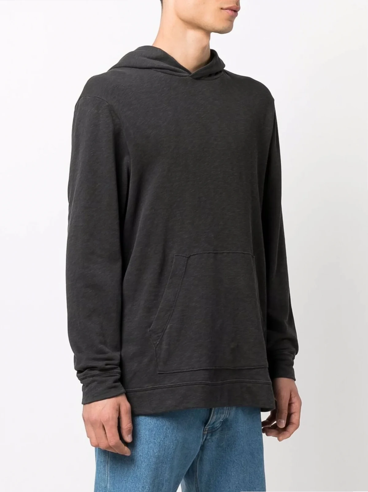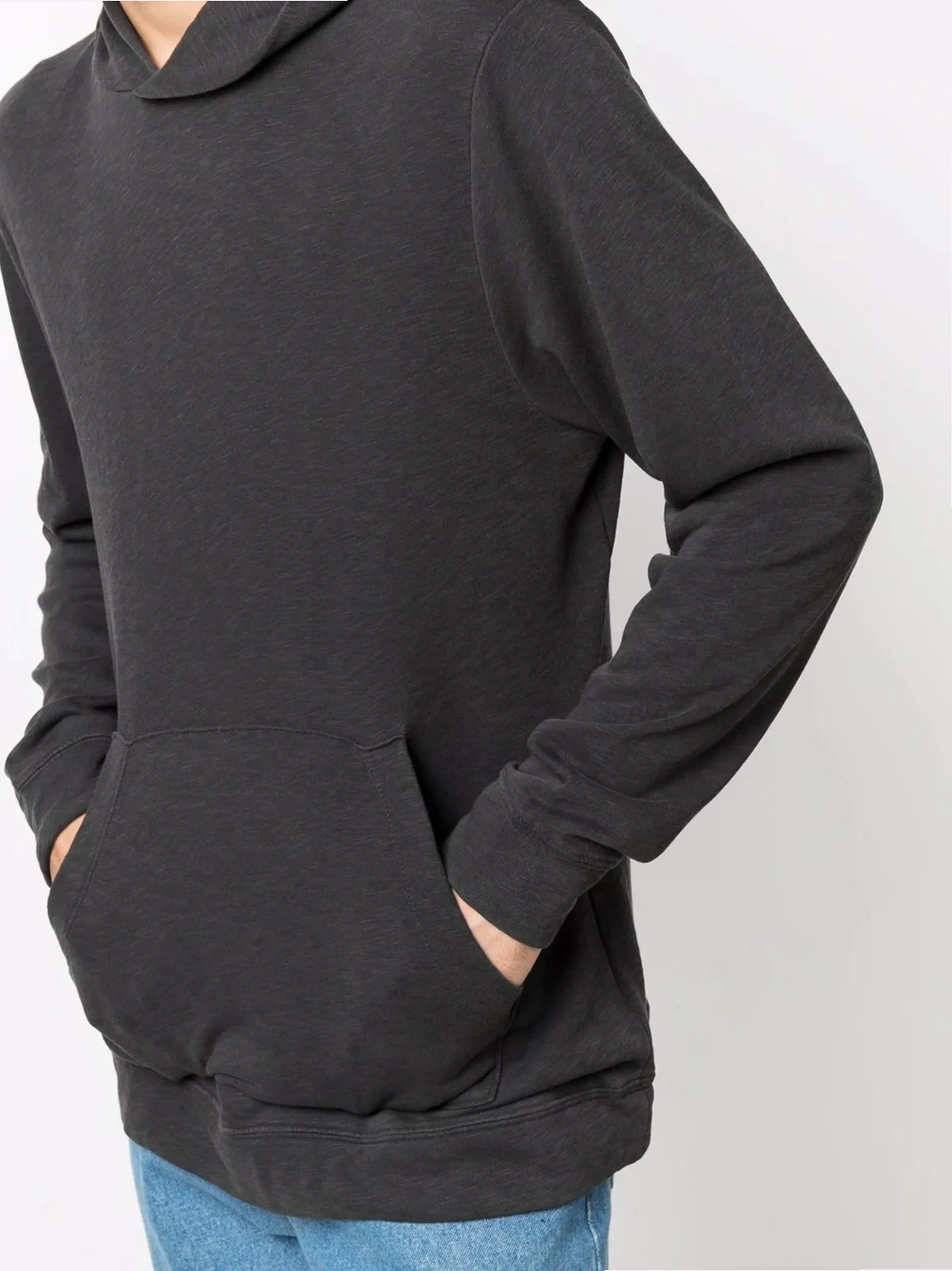 dark grey supima cotton classic hood long sleeves single patch pocket straight hem