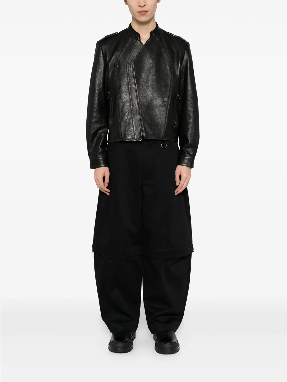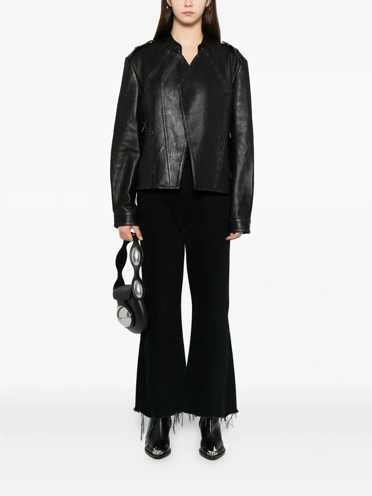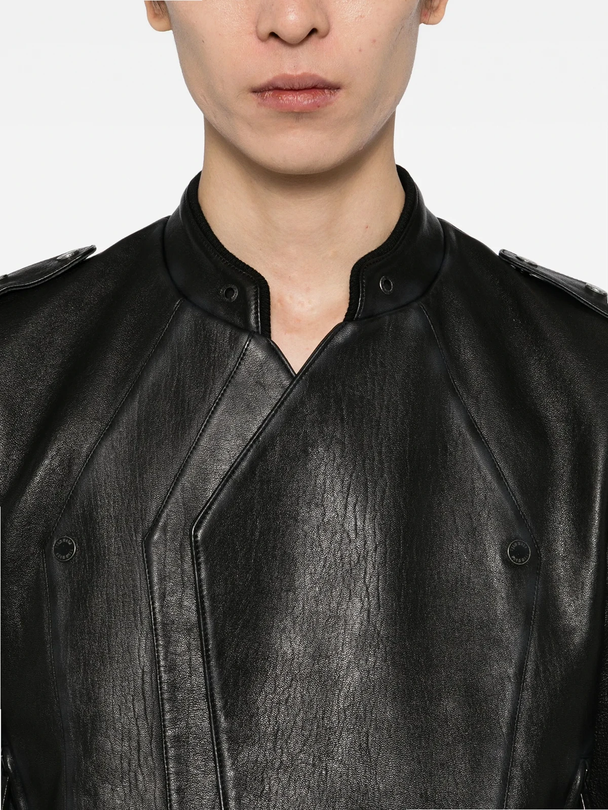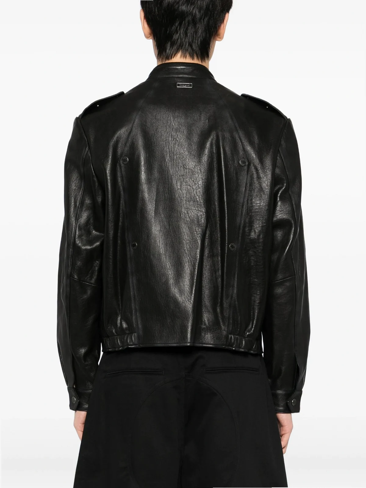 TEAM WANG design logo patched leather jacket