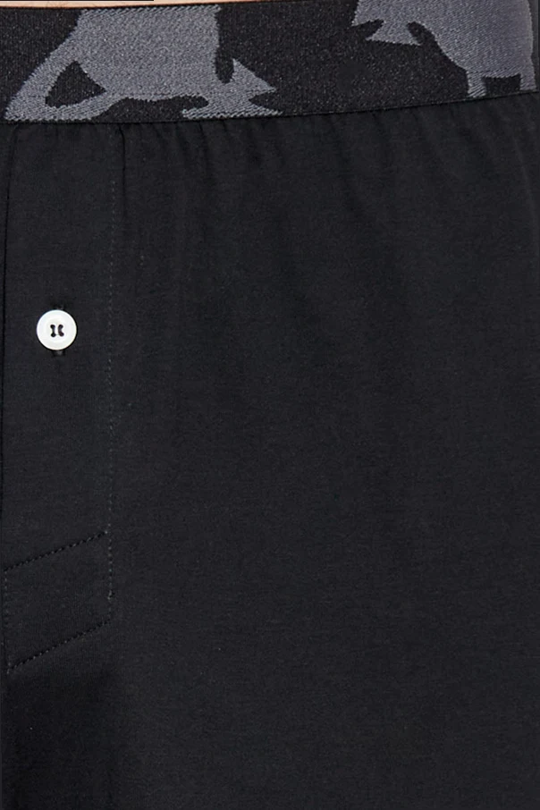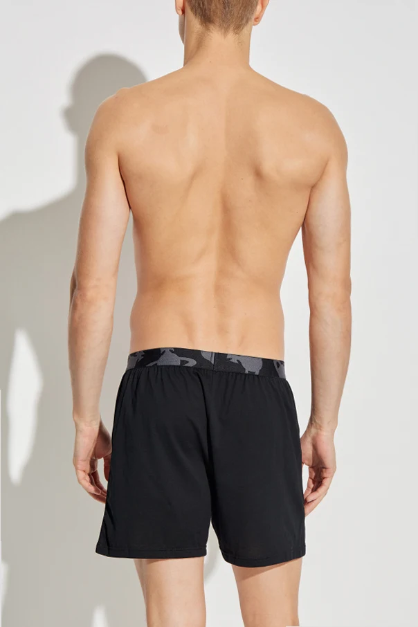 Experience exceptional comfort and understated luxury with these classic black cotton boxers from Vivienne Westwood. Crafted from notably soft and breathable cotton, they feature a relaxed fit and lightweight texture, ensuring effortless freedom of movement throughout the day. The wide elastic waistband commands attention with its tonal gray gradient and distinctive animal-inspired motif, harmoniously balancing modern style and sophistication.