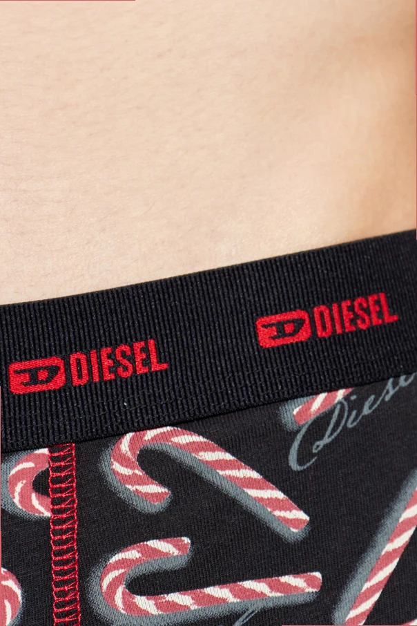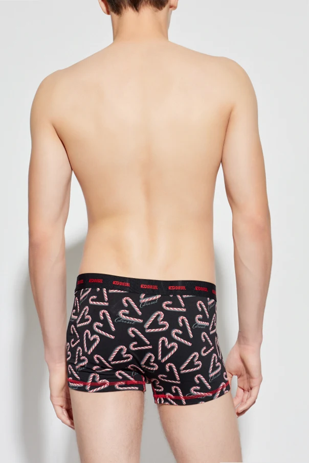 A captivating, all-over motif of heart shapes—ingeniously rendered from iconic candy canes—delivers both whimsy and modern sophistication, setting this design apart. The signature black elastic waistband showcases the bold, repeating red Diesel logo, adding a subtle accent of prestige and instantly recognizable style.
