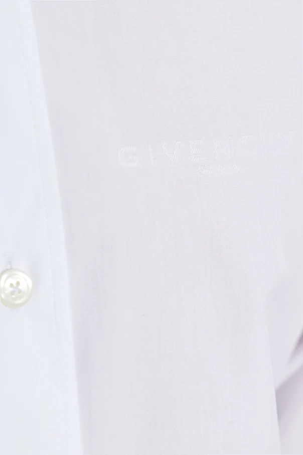 The immaculate white fabric is entirely pattern-free, accentuating the shirt's enduring minimalism. Lustrous front buttons in white or pearlescent hues add a discreet gleam, seamlessly complementing the whole. A subtle, tonal Givenchy logo is masterfully embroidered on the left chest, a delicate signature of luxury that never overpowers the design. Wide, straight cuffs fasten to complete this emblem of modern aristocratic style.