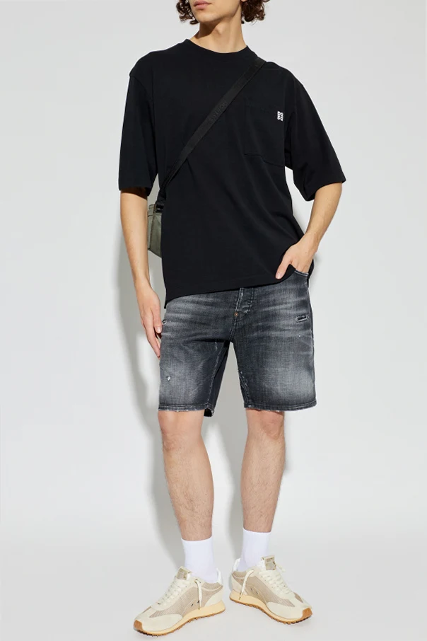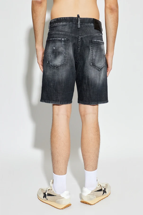 Elevate your summer wardrobe with the “Marine” denim shorts by Dsquared2, impeccably crafted in sleek black washed denim. These shorts showcase a refined, straight silhouette that reaches just above the knee, offering a subtly tailored fit with a classic waistline for enduring sophistication.