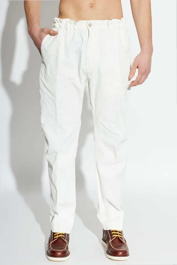 An elasticated, softly gathered waistband with classic belt loops ensures an impeccable fit, balancing comfort and style. Thoughtful details include a traditional button-and-zip closure, two angled side pockets, and two back flap pockets with button fastenings, lending a refined yet utilitarian allure. The understated, unembellished design elevates any casual ensemble with discreet sophistication.