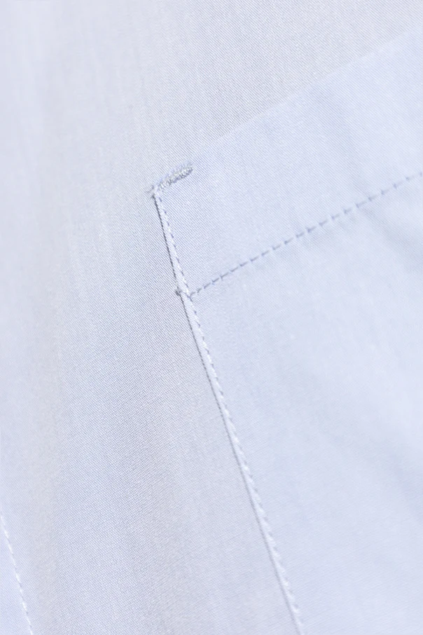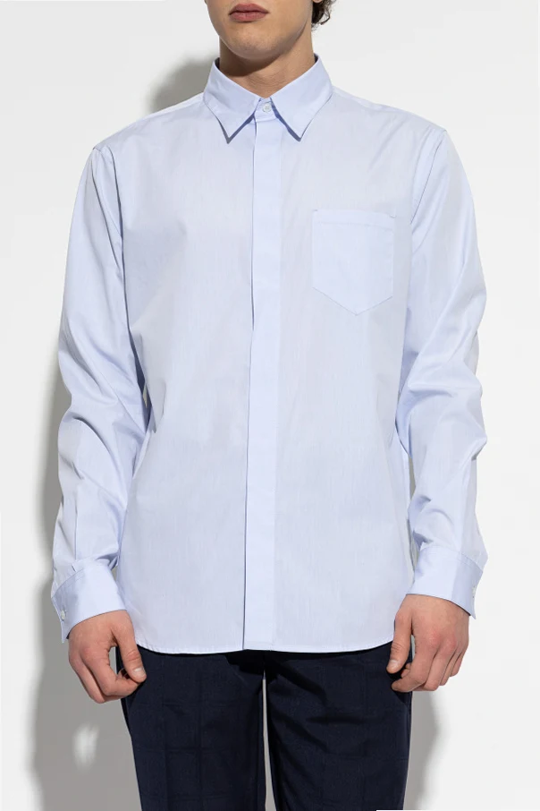 The understated design features a single, neatly stitched pocket on the left chest and a concealed button placket, emphasizing a minimalist formal aesthetic. Its traditional, structured collar and simple cuffs secured with a single button enhance the shirt's polished profile, making it an impeccable choice for business or formal occasions.