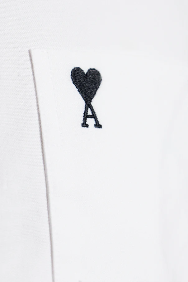 The shirt features a classic, slightly relaxed cut and a gently rounded hem—providing both impeccable structure and unforced comfort. A timeless button-down collar gracefully frames the neckline, while a traditional chest pocket is enhanced by a black heart emblem with an "A" intricately embroidered—a signature motif of the renowned Parisian designer.
