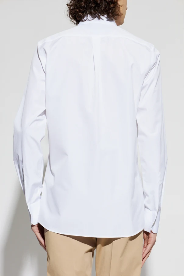 The Application Shirt by Dolce & Gabbana epitomizes refined Italian sophistication. Meticulously crafted from smooth, premium cotton, this classic white men’s shirt presents a clean, elegant silhouette complemented by long sleeves and a sharply tailored, formal collar.