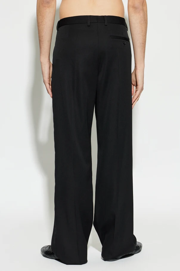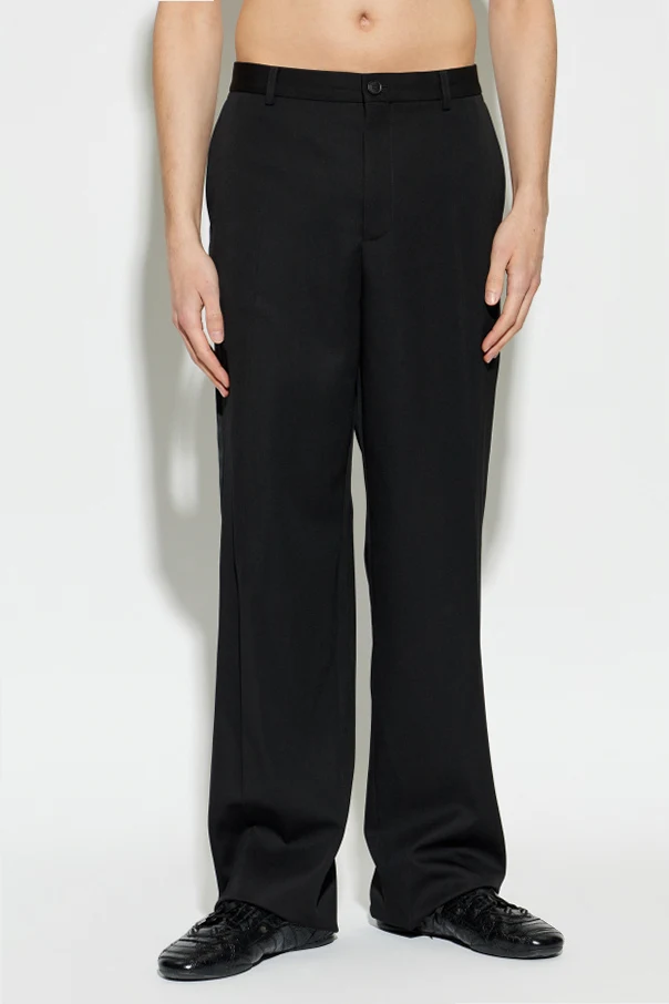 Discover the timeless sophistication of these Balenciaga straight-leg trousers , expertly tailored from premium black wool for an understated yet distinctive allure. The smooth, matte finish of the high-grade wool drapes beautifully along the leg, delivering effortless elegance and a refined silhouette free of distracting patterns or visible branding.