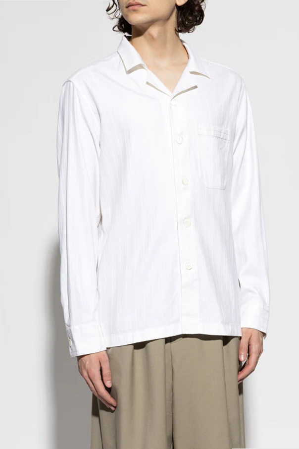The shirt features a classic tailoring with a slightly relaxed silhouette, complemented by long sleeves and traditional buttoned cuffs. A soft, spreading smoking-style collar infuses a modern yet timeless touch, while the single, finely stitched chest pocket offers subtle practicality without embellishment.
