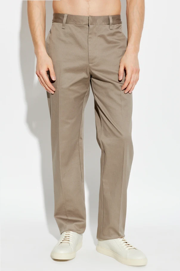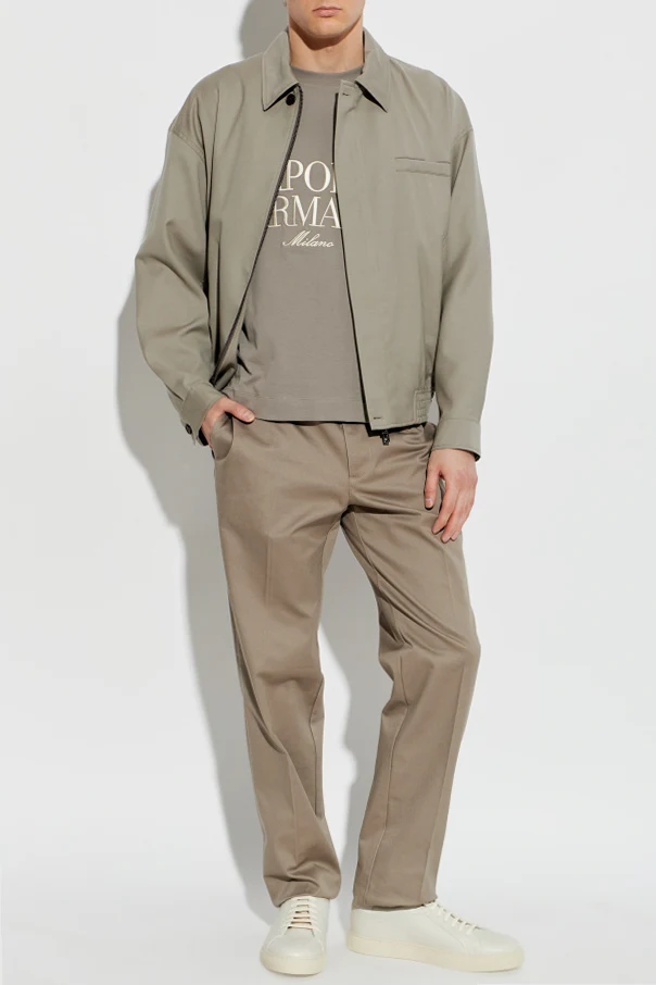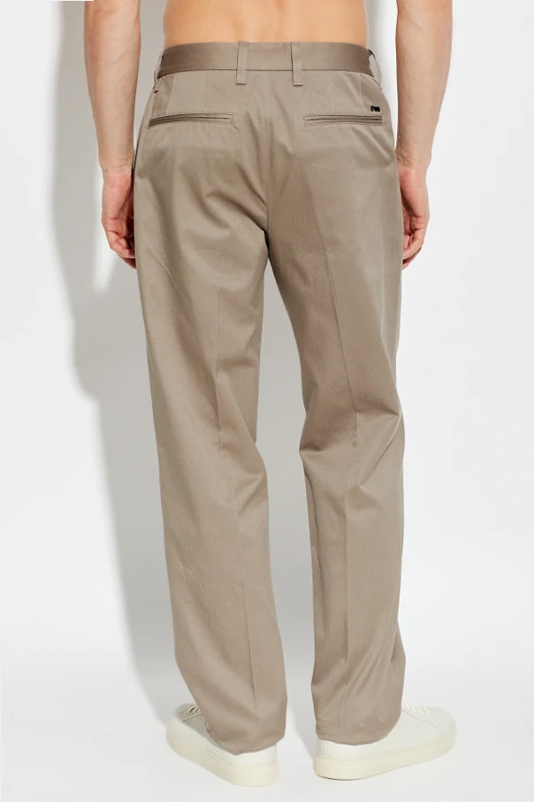 Immerse yourself in understated sophistication with these tapered-leg trousers from Emporio Armani , meticulously crafted in a refined beige hue. Constructed from a premium, densely woven cotton blend, these pants offer a soft, matte finish that immediately distinguishes them as a staple of discerning style. The classic silhouette features a regular rise and subtly narrowing legs, ensuring a contemporary yet timeless profile suited for both modern and traditional wardrobes.